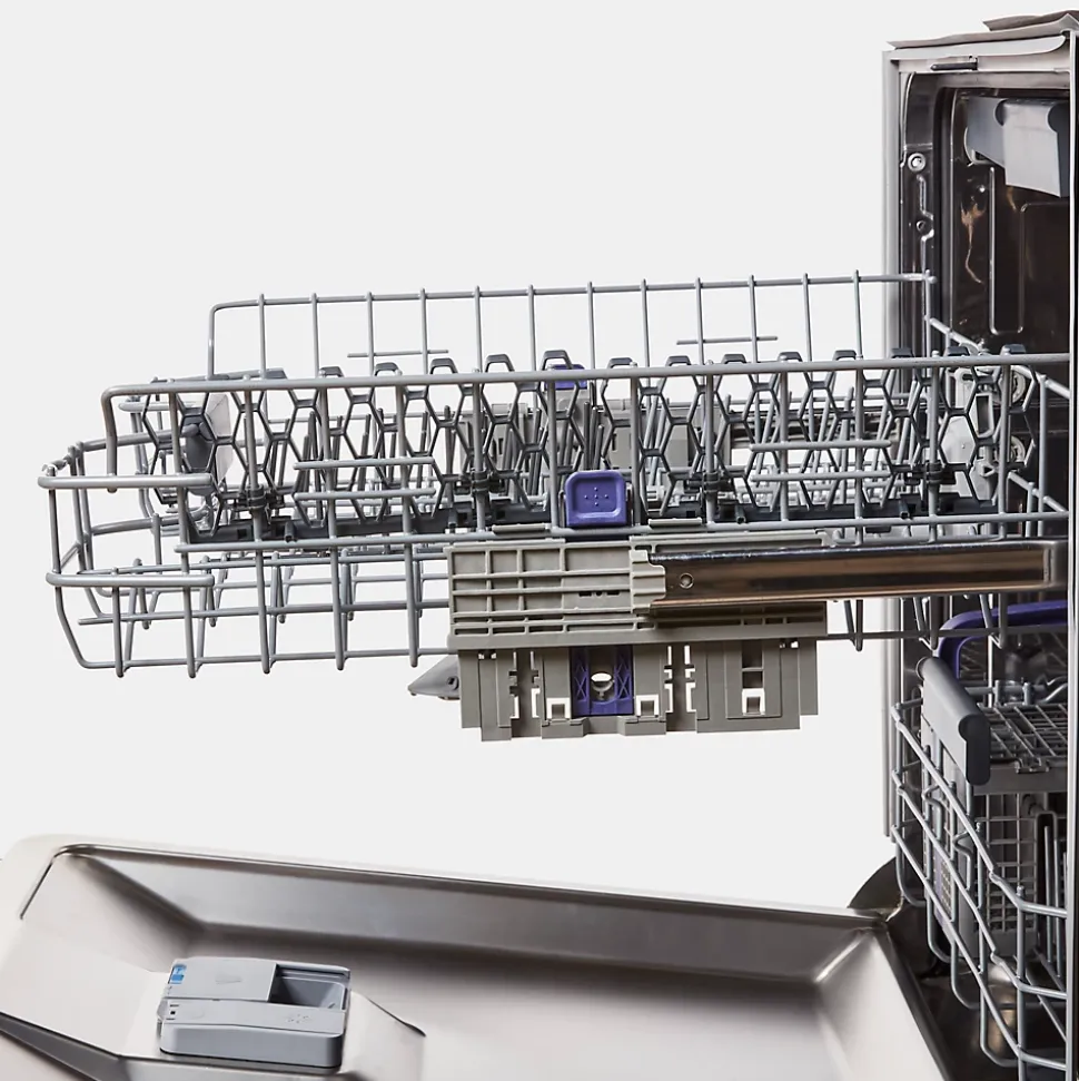 - Picots rabattables : Les picots rabattables sur le panier inférieur, comme sur le panier supérieur, vous permettent de gagner de l’espace pour laver de grands ustensiles de cuisine.