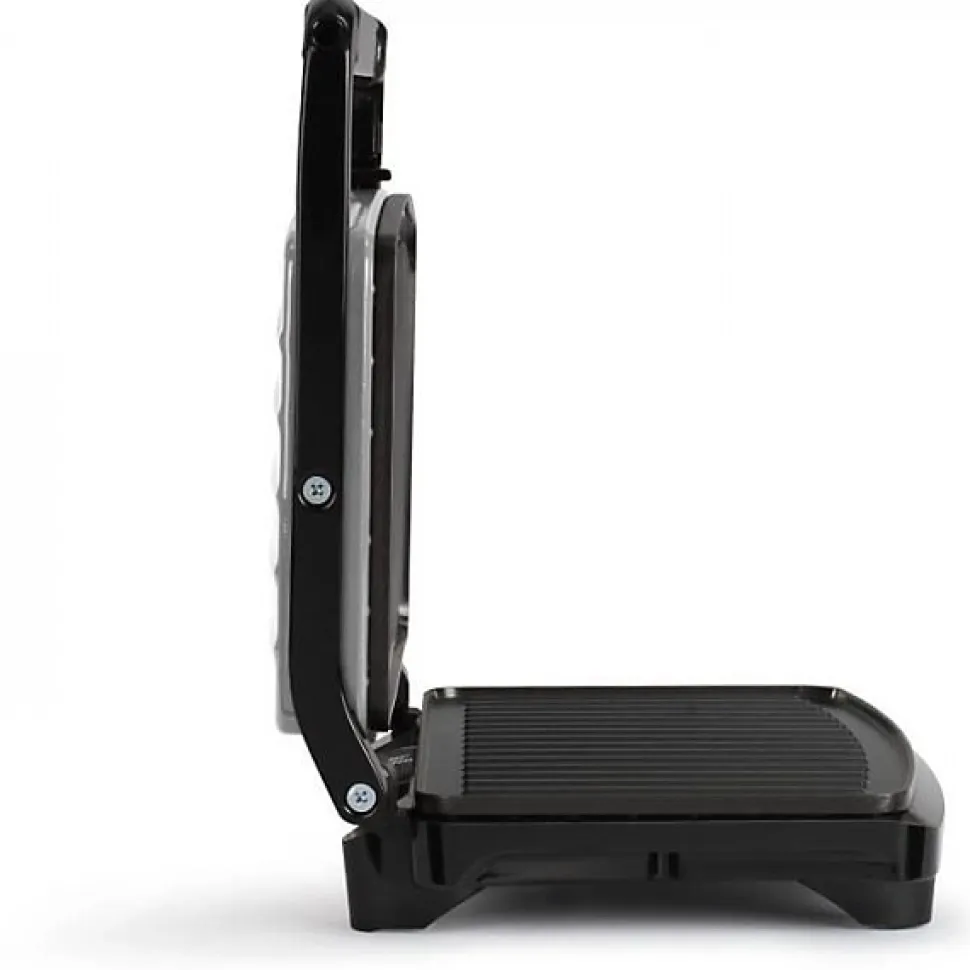 Compact grill – Plaques rainurées avec revetement antiadhésif – Charniere ajustable pour s’adapter a l’épaisseur des aliments – Surface de cuisson de 23 x 15 cm- Témoin lumineux de chauffe – Ajustement automatique de la température – Rangement vertical possible- Crochet de verrouillage et pieds antidérapants