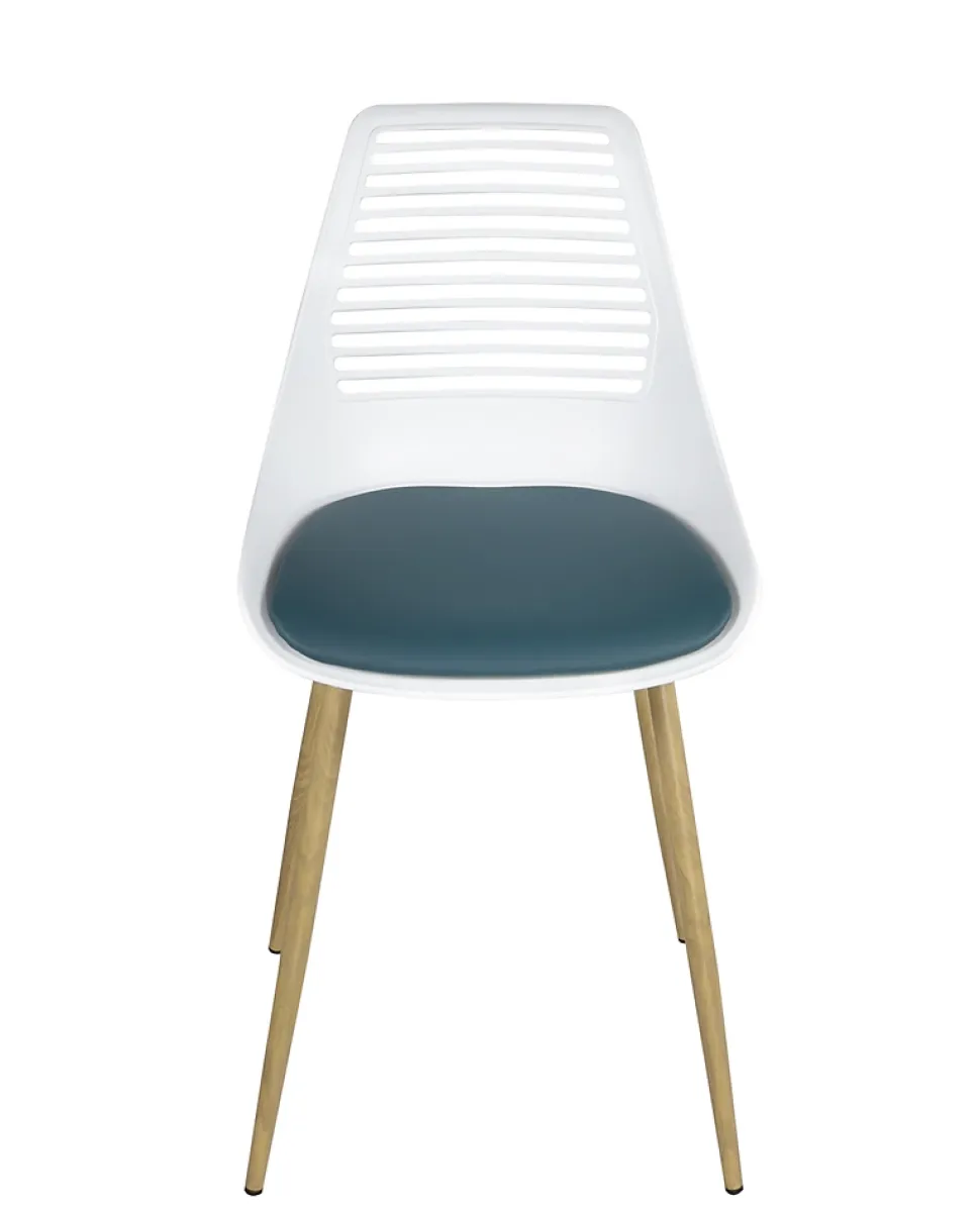 Lot de 2 chaises rétro geos. Une chaise de cuisine aux lignes vintage inspirées des années 60 avec son dossier ajouré et son coussin simili cuir intégré. Large siège ergonomique en polypropylène résistant et facile à entretenir, pieds en métal imitation bois pour une stabilité et une solidité à toutes épreuves. Une chaise de cuisine idéale pour réunir autour de votre table toute la famille au quotidien ! matières: – siège en polypropylène avec coussin fixe habillé de simili cuir et rembourré – piètement en métal finition transfert imitation bois- patins en plastique (protège vos sols) fiche technique : – hauteur totale : 85 cm – assise / dossier : 46 (l) x 43 (p) x 39 (h) cm – hauteur d’assise : +/- 48 cm – dimensions hors tout : 46 x 56 x 85 cm – colisage : livré en 1 colis de 56 x 48 x 62 cm – nombre de pièces par carton : 2 – poids brut d’un carton : 11,1 kg – poids net d’une chaise : 4,5 kg montage : – facileentretien : – chiffon doux légèrement humide