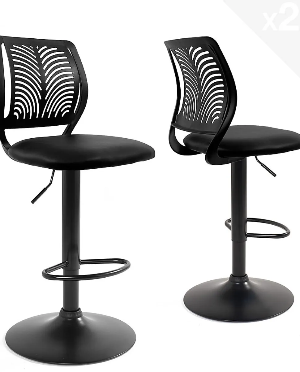 Lot de 2 tabourets de bar design sawa. Un tabouret au design contemporain et réglable en hauteur pour s’adapter à toutes les hauteurs de plan de travail (hauteur d’assise de 60 à 82 cm). Il est équipé d’un coussin fixe rembourré revêtu de simili cuir (résistant et facile à nettoyer) et d’un dossier ergonomique et aéré pour encore plus de confort. Pivotant à 360°, sa base est munie de bandes anti dérapantes et d’un marche pied intégré. C’est un excellent choix pour une cuisine, un îlot central ou un derrière un bar.matières:- dossier en polypropylène (plastique) – coussin rembourrage mousse, revêtement simili cuir- structure en métal acier chromé / métal noir mat- pompe à gaz classe 2- base diamètre 38,5 cmfiche technique :- diamètre de la base : 38,5 cm- hauteur d’assise mini 60 cm / maxi 82 cm- hauteur totale : 89 à 111 cm- assise : 41 (l) x 38 (p) x 33 (h) cm- dimensions hors tout : 42 x 37 x 70->90 cm- colisage : livré en 1 colis de 52 x 38 x 41 cm- nombre de pièces par carton : 2- poids brut : 12,5 kg pour le lot de 2 + carton- poids net : 5,5 kg pour 1 tabouretentretien :- chiffon doux et sec pour les chromes, pas d’abrasif- chiffon doux légèrement humide, pas de détergents