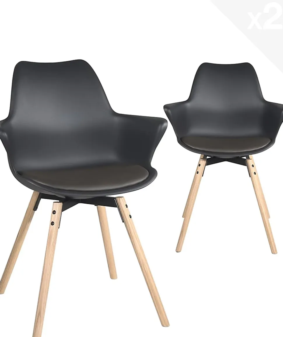 La chaise moti est une chaise avec accoudoirs qui offre une ligne et un design scandinaves intemporel. Son dossier en plastique souple incorpore des accoudoirs et un coussin simili cuir rembourré est intégré à l’assise. Le moti est monté sur un élégant pieds en chêne clair qui donne une touche premium à ce petit fauteuil. Confortable, robuste et légère c’est une excellente chaise qui trouvera sa place autour de votre table de cuisine ou dans votre salle à manger. matières: – siège en polypropylène noir ou blanc – piètement en bois de chêne – coussin habillé de simili cuir noir, blanc ou marron foncé fiche technique : – hauteur totale : 82 cm – assise : 45 (l) x 44 (p) x 44 (d) cm – hauteur d’assise : +/- 47 cm – hauteur accoudoirs : +/- 64 cm – dimensions hors tout : 56 x 58 x 84 cm – colisage : livré en 1 colis de 70 x 62 x 35 cm – largeur accoudoirs : +/- 59 cm – nombre de pièces par carton : 2 – poids brut d’un carton : 12 kg – poids net d’une chaise : 5,5 kg montage : – facileentretien : – chiffon doux légèrement humide