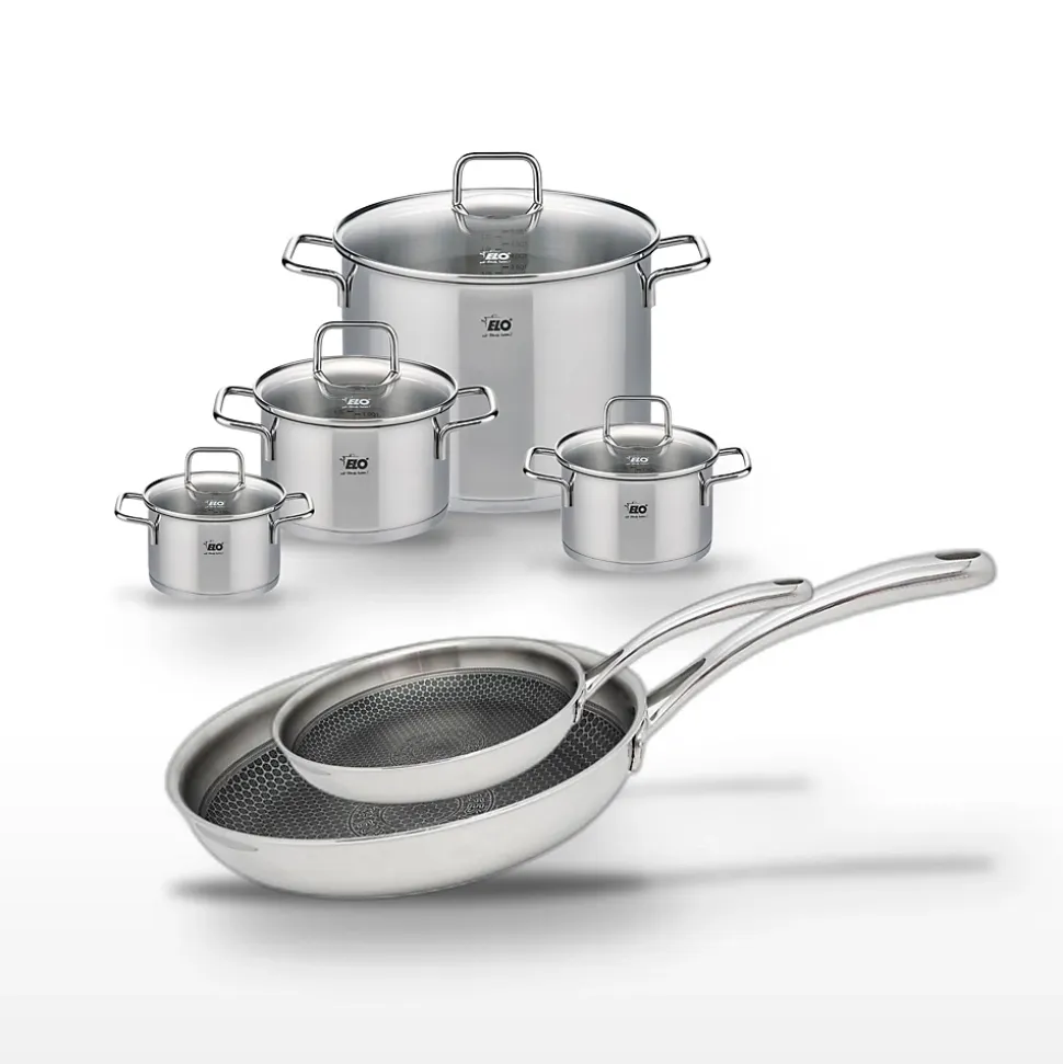 - DESCRIPTION: L’ensemble Elo Relief Evolution offre deux poêles en inox 18/10 et quatre faitouts, garantissant une cuisson optimale et homogène pour tous vos plats.