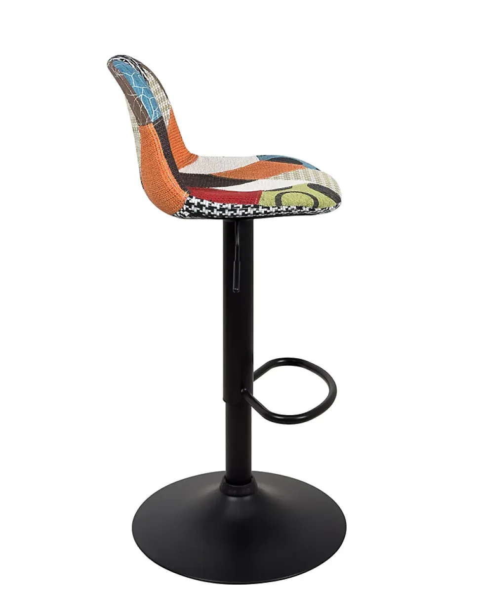 Ce lot de 2 tabourets sig patchwork offre une assise originale rembourrée habillée de textile multicolore. Idéal derrière un bar ou un îlot de cuisine contemporaine. Très fonctionnel, il convient à toutes les hauteurs de plan de travail, de cuisine ou de bar. Le sig est réglable en hauteur, pivotant, son pied est monté sur une base ronde avec un joint anti dérapant et un repose pied intégré. Avec son siège compact c’est un tabouret adapté aux petites et moyenne morphologies (taille s / m – l). Du fait de sa création artisanale, les teintes, couleurs et motifs du revêtement peuvent varier d’une chaise à l’autre, comme l’emplacement du carré à motif floral par exemple. Matières : – coque en polypropylène, assise rembourrée de mousse et couverte de textile patchwork – structure en métal – base de diamètre 40,5 cm – repose pieds soudés. – réglage hauteur par manette chromée qui actionne un vérin mécanique. – montage facile par une personne. Assise : 31 (p) x 39 (l) x 23 (d) cmdimensions hors tout : 41,5 x 41,5 x 82/102 cm hauteur d’assise : mini : 61cm / maxi : 81cmentretien : chiffon sec sur les parties métal, chiffon humide sur la partie assise. Ne pas utiliser de détergents ou matières abrasives poids brut : 12,8 kg pour le lot de 2 poids net : 5,75 kg pour 1 tabouret