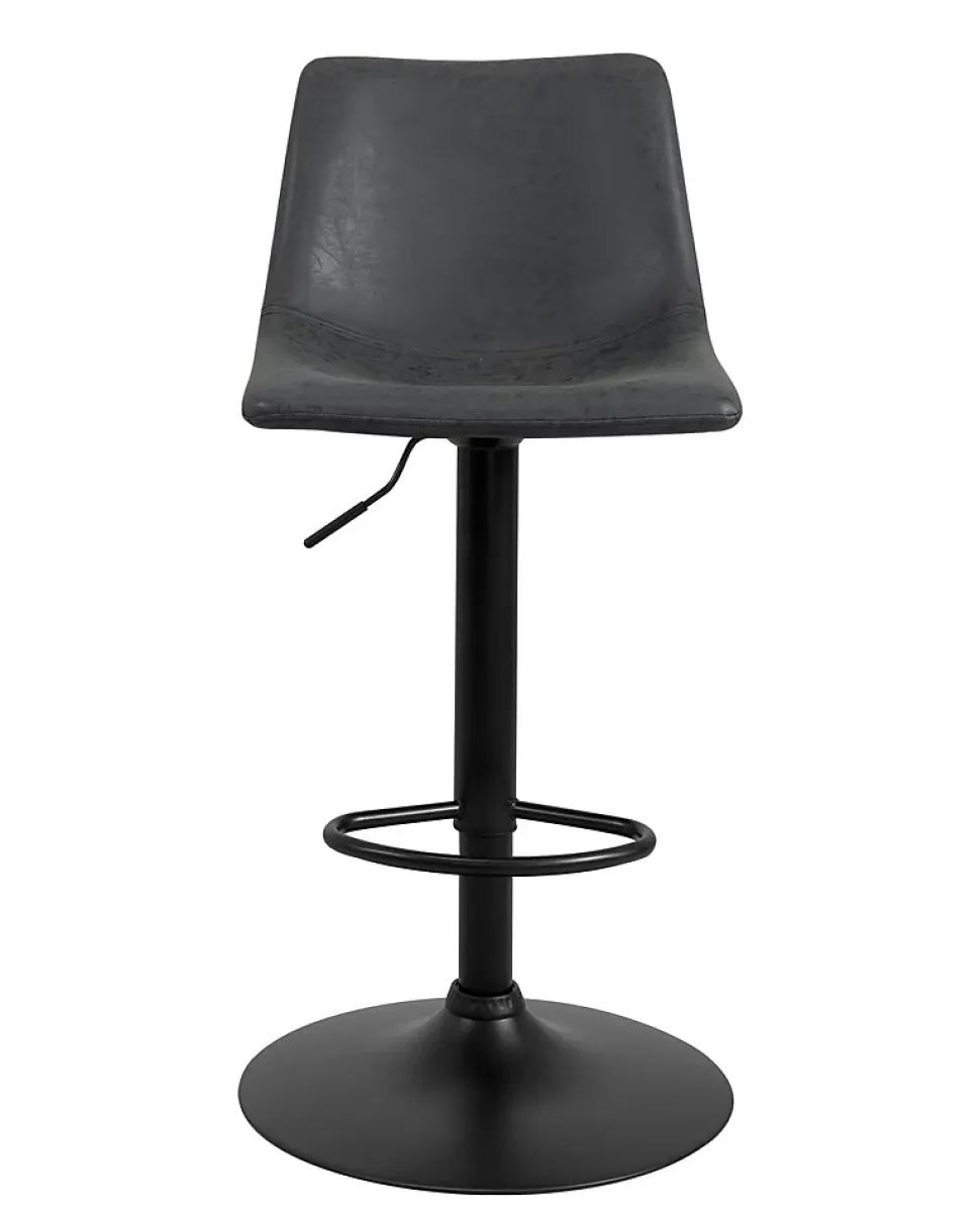 Tabouret de bar style industriel helio. Vendu par lot de 2, ce tabouret reprend les codes du style industriel avec ses coloris foncés, son piètement en métal noir et son siège habillé de simili gris ardoise effet cuir vieillit. Il est très confortable avec son large siège incurvé à dossier entièrement rembourré de mousse et habillé d’un beau similicuir doux et chaleureux. L’ensemble est monté sur un piètement en métal équipé d’une pompe à gaz à levier qui permet de régler la hauteur d’assise de 61 à 82 cm tout en procurant un amorti supplémentaire. L’ensemble est équipé d’un repose pieds et pivote à 360°. Le simili offre un rendu vintage imitation cuir antique avec une belle finition aux coutures apparentes. Très stable le tout repose sur une large base de 45 cm de diamètre équipée d’une bande silicone anti dérapant.matières:- assise polypropylène recouverte de similicuir- rembourrage mousse- piètement en métal peint équipé d’une pompe à gaz à levier et d’un repose pieds fiche technique :- hauteur totale : +/- 89->110 cm- hauteur d’assise : +/- 61->82 cm- assise / dossier : 43 (l) x 36 (p) x 32 (h)cm- diamètre de la base :45 cm- dimensions hors tout : 46 x 56x 89—>110 cm- colisage : livré en 1 colis de 59 x 46 x 47 cm- nombre de pièces par carton : 2- poids brut : 16.1 kg- poids net d’une chaise : 7.2 kgmontage :- facile / une personne. A assembler suivant instructions jointes au colisentretien :- chiffon doux et sec pour les chromes, pas d’abrasif- chiffon doux légèrement humide pour le simili, pas de détergents