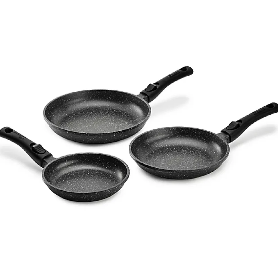 Lot 3 poêles premium 20 / 24 / 28 cm fonte d’aluminium manche amovible de la marque Pradel En fonte d’aluminium