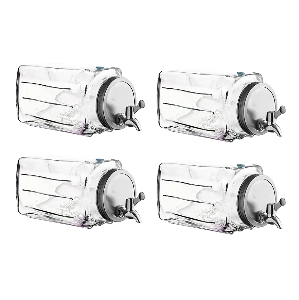 Lot de 4 Fontaine, pot à boisson en verre solide avec couvercle à vis. Résistant aux hautes températures, parfait pour tous les types de boissons froides et chaudes. Le distributeur de boissons de 3 litres est parfait pour garder les boissons froides dans le réfrigérateur. Doté d’un robinet facile à verser qui gardera les boissons fluides et d’une forme rectangulaire élégante, conçue spécifiquement pour maximiser l’espace sur les étagères de votre réfrigérateur. Le lot contient 4 bocaux distributeur en verre de 3 litres, 4 disque d’étanchéité, 4 bande à vis en acier inoxydable et 4 robinet verseur en acier inoxydable, difficile à rouiller, robuste et durable. Conception anti-obstruction intégrée, écoulement régulier de l’eau, vous aide rapidement à remplir le verre. Idéal pour les anniversaires, les dîners, les vacances, les mariages, les fêtes, les événements en plein air, les fêtes à la piscine, les pique-niques, etc.Dimensions : Longueur 32.5 x Profondeur 13.5 x Hauteur 32.5 cmMatière : Verre/acier inoxydableCouleur : TransparentPoids : 4 kgCapacité : 12 L