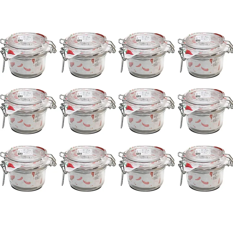 Bocal de conservation pour stocker les aliments secs, confiture, fruits, ingrédients, etc. Ce pot de conservation a un couvercle avec une charnière. L’anneau en caoutchouc garantit que le couvercle ferme le bocal de manière étanche à l’air et aux fuites. Idéal pour garder et conserver hermétiquement tous les arômes et les odeurs des aliments fraîchement préparés.Dimensions : Diamètre 8.3 x Hauteur 7.1 cmMatière : verreCouleur : transparentPoids : 1.2 kgCapacité : 12.5 cl