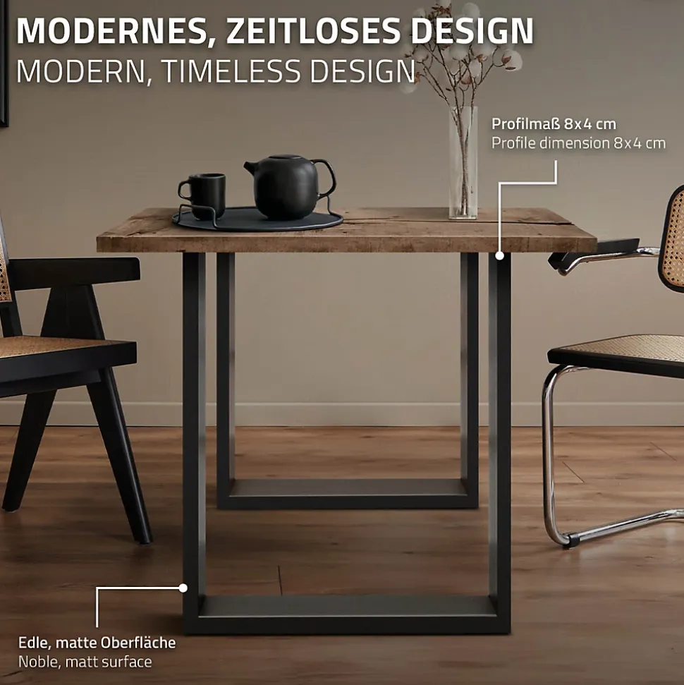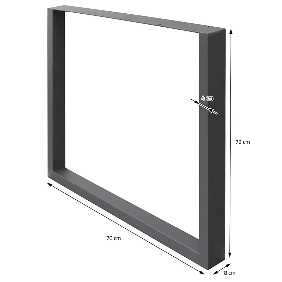 Livraison: 2 x pieds de table 70 x 72 cm en acier revêtu par poudre 4 x protecteurs de sol Données techniques: Matériau: acier revêtu de poudre Couleur: gris foncé Points de montage: 2 x 5 trous Dimensions (LxH): environ 70 x 72 cm Épaisseur de la plaque de montage: environ 4 mm Epaisseur du tube profilé: environ 1 mm Taille du tube profilé: environ 8 x 2 cm Epaisseur: environ 0.45 mm Poids: environ 4,8 kg Caractéristiques: Le look séduit avec un revêtement en poudre gris fantastique. Les pieds en métal sont livrés par lot de 2. Base de table de haute qualité – durable et facile à nettoyer. Universellement applicable. Très facile à nettoyer. Pour la cuisine, le salon, le bureau et bien plus encore. Description: Les pieds de table conviennent parfaitement comme base de table pour table à manger, bureau et table basse. Ils sont fabriqués en fer plat de 4 mm d’épaisseur et en profilés carrés stables. Pour en savoir plus, vous pouvez utiliser nos pieds de table à l’intérieur et à l’extérieur grâce au revêtement en poudre. Les soudures ont été polies avec le plus grand soin. À propos, toute la structure est non seulement stable, mais aussi très esthétique. Pour assurer une stabilité à 100%, nous vous recommandons de toujours utiliser au moins 2 chemins de table (1 paire). Les pieds de table ECD Germany sont parfaits pour les plateaux composés de divers matériaux, tels que bois, plastique, pierre etc.