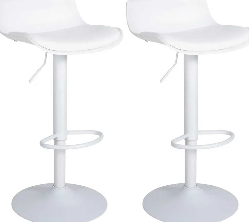 Set de 2 tabourets de bar Aveiro similicuirCes tabourets de bar convainquent par leur conception intelligente. Ils ont été réduits à l’essentiel sans compromettre le confort d’assise. La coque d’assise incurvée est en similicuir et offre une expérience d’assise agréable. Les tabourets de comptoir sont réglables en hauteur à l’aide d’un lift à gaz et peuvent être tournés à 360 degrés. Un repose-pieds qui se règle de manière synchrone avec l’assise permet de rester assis confortablement pendant plusieurs heures. Le design est complété par un pied trompette en métal qui garantit la stabilité de la chaise de comptoir. Le sol est protégé par un protège-sol afin d’éviter les rayures et les dommages.Détails:Hauteur totale : 69 – 94 cmLargeur totale : 43 cmProfondeur totale : 44 cmHauteur d’assise : 57 – 81 cmSurface d’assise (l x p) : 39 x 35 cmHauteur du repose-pied : 16 41 cmHauteur du dossier : 16 cmMax. Capacité de charge : 136 kgPoids : 7 kgComposition du matériau : 100% polypropylèneAssise:Matériau : similicuirRéglable en hauteurAssise pivotante à 360°Piétement:Pied trompette incl. Protecteur de solMatériau : métalPied confortable en forme d’arcSpécificités:Extrêmement facile à nettoyerStabilité sûreLignes clairesConseils d’entretien :Essuyer les salissures légères avec un chiffon en coton humidePour le nettoyage des surfaces métalliques, une solution de rinçage douce suffit généralementNe passer l’aspirateur qu’avec un accessoire approprié.