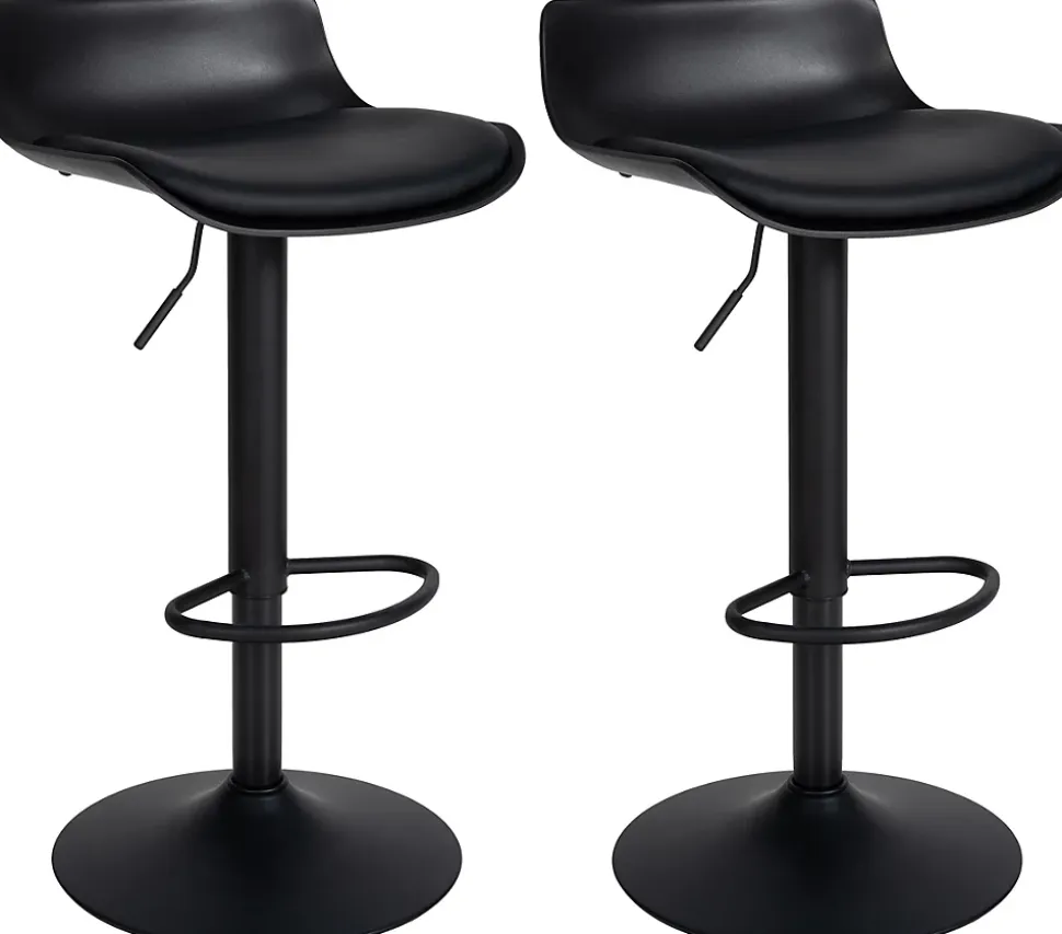 Set de 2 tabourets de bar Aveiro similicuirCes tabourets de bar convainquent par leur conception intelligente. Ils ont été réduits à l’essentiel sans compromettre le confort d’assise. La coque d’assise incurvée est en similicuir et offre une expérience d’assise agréable. Les tabourets de comptoir sont réglables en hauteur à l’aide d’un lift à gaz et peuvent être tournés à 360 degrés. Un repose-pieds qui se règle de manière synchrone avec l’assise permet de rester assis confortablement pendant plusieurs heures. Le design est complété par un pied trompette en métal qui garantit la stabilité de la chaise de comptoir. Le sol est protégé par un protège-sol afin d’éviter les rayures et les dommages.Détails:Hauteur totale : 69 – 94 cmLargeur totale : 43 cmProfondeur totale : 44 cmHauteur d’assise : 57 – 81 cmSurface d’assise (l x p) : 39 x 35 cmHauteur du repose-pied : 16 41 cmHauteur du dossier : 16 cmMax. Capacité de charge : 136 kgPoids : 7 kgComposition du matériau : 100% polypropylèneAssise:Matériau : similicuirRéglable en hauteurAssise pivotante à 360°Piétement:Pied trompette incl. Protecteur de solMatériau : métalPied confortable en forme d’arcSpécificités:Extrêmement facile à nettoyerStabilité sûreLignes clairesConseils d’entretien :Essuyer les salissures légères avec un chiffon en coton humidePour le nettoyage des surfaces métalliques, une solution de rinçage douce suffit généralementNe passer l’aspirateur qu’avec un accessoire approprié.