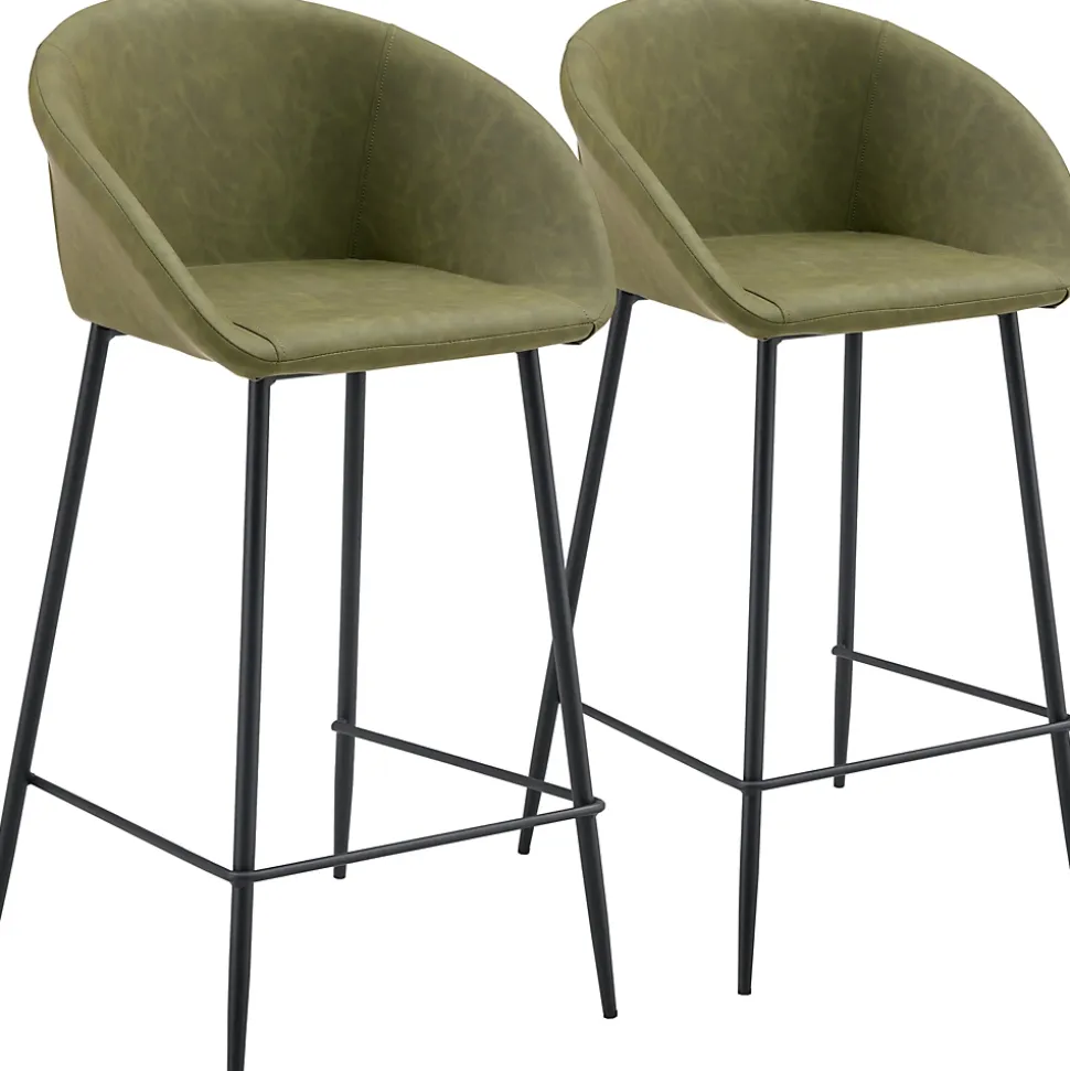 Description : Les tabourets Achille offrent une assise stable grâce à leurs pieds en fer. Leur revêtement en simili est à la fois élégant et éclatant. Un repose-pieds est intégré pour plus de confort. Parfaits autour d’un bar, d’une table haute ou d’un îlot central, ces tabourets s’harmonisent avec divers styles de décoration ! Détails : Dimensions : – Tabouret : P 59 × l 52 × H 91cm- Assise : P 34 x l 31 x H 67cm- Dossier : Ép 3,5 X H 26cm- Pied : Ø 1,9cm Matières : – Revêtement : polyuréthane- Rembourrage : mousse 27kg/m³- Pieds : fer Couleurs : – Revêtement : vert- Pieds : noir Informations complémentaires : – Utilisation : intérieur- Nombre de places : 2- Poids maximum supporté : 120kg- Poids net à l’unité : 6,5kg- Repose-pieds : oui- À monter (notice incluse) – Garantie : 2 ans Livraison : Contenu colis : 2 tabourets de barLivraison effectuée en pas de porte, en bas d’immeuble – Livraison en 1 colisColis 1 : L 71 × l 45 × H 55cm – poids brut : 15kg / poids net : 13kg