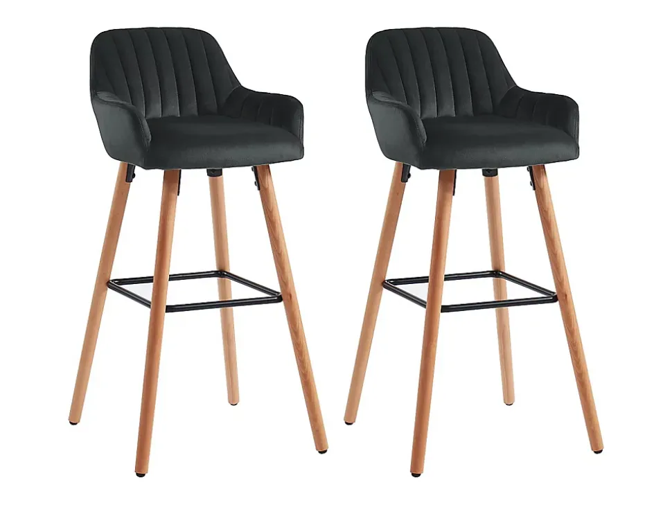 - Lot de 2 tabourets de bar ELEANA – Velours et Métal effet bois de Hêtre – Coloris : Noir. Style : Vintage. Dimensions: L47xP52xH98cm. Assise : H75 cm. Profondeur d’assise : 37cm. En quête de confort et de style rétro ? Optez pour la collection ELEANA!