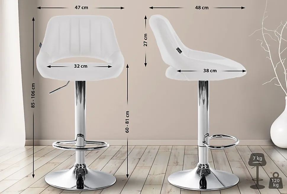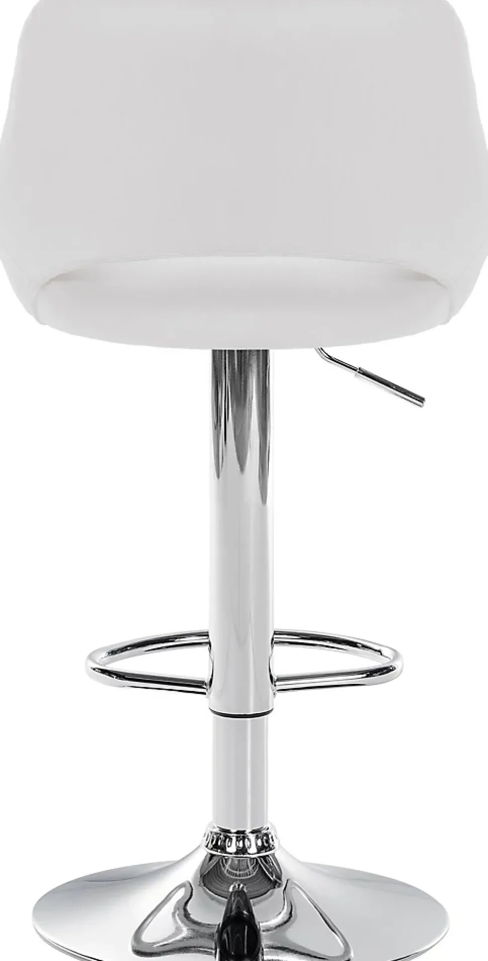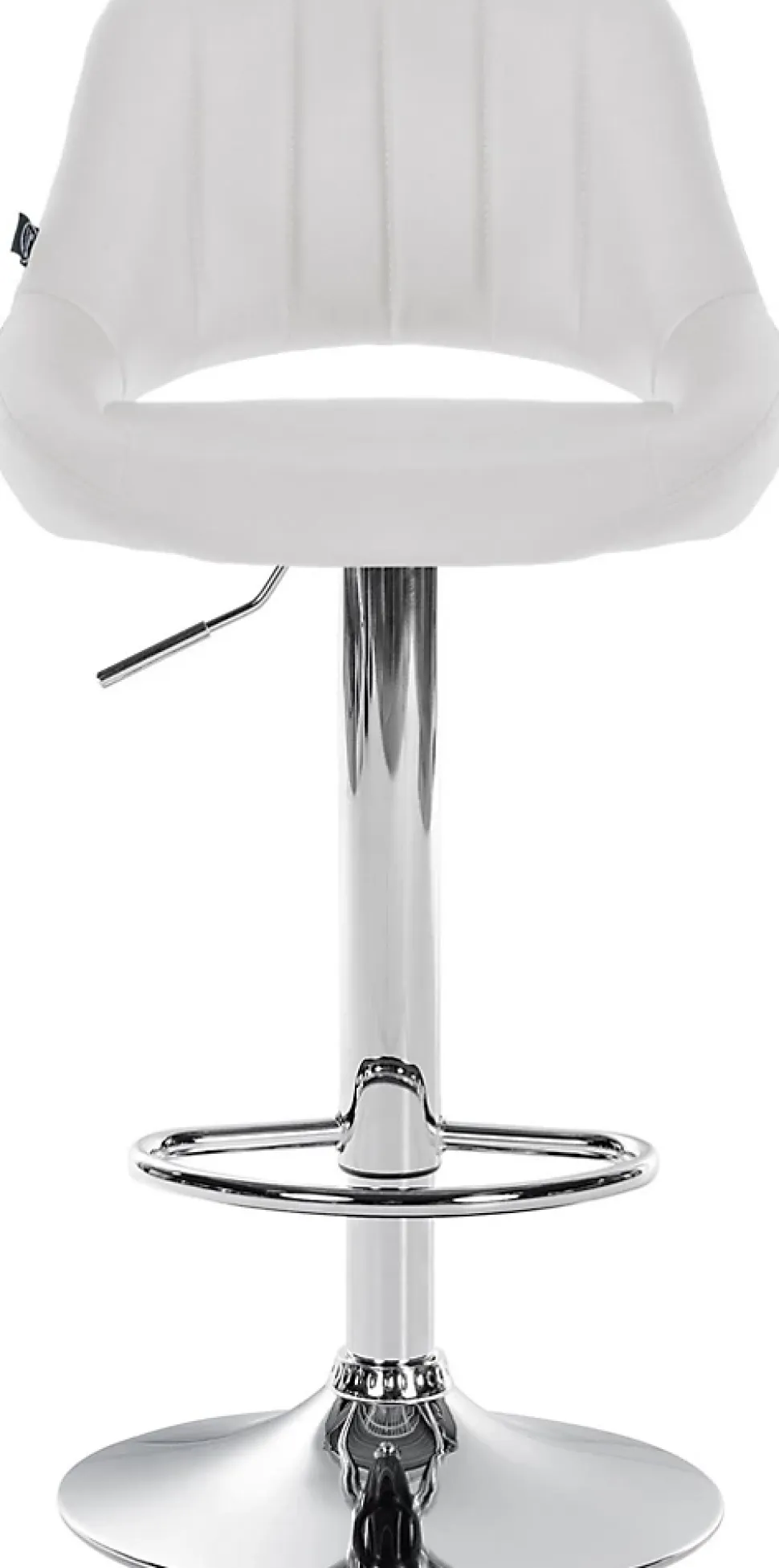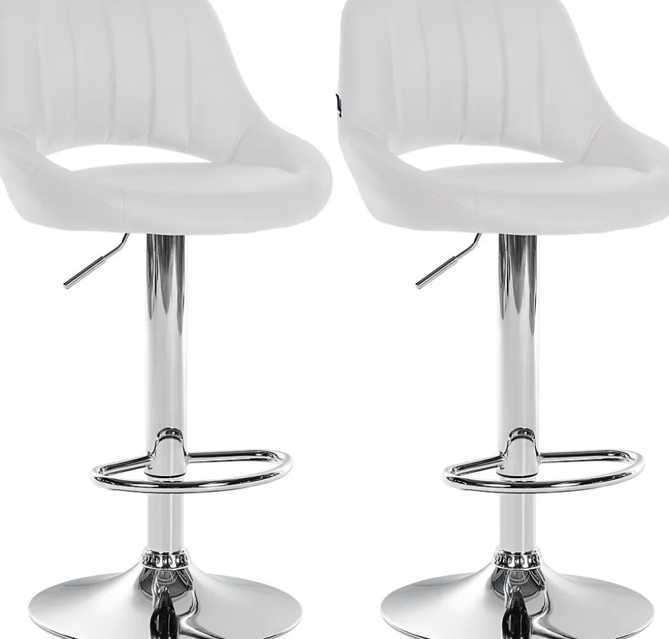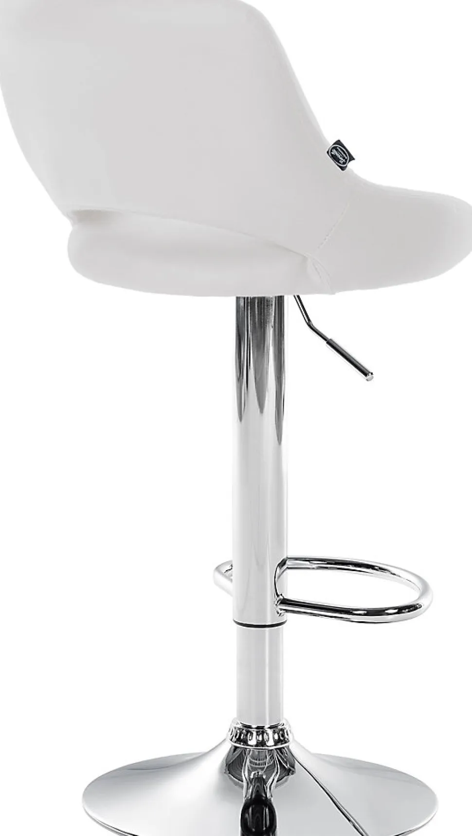 Lot de 2 tabourets de bar Milet similicuir, Chaise de bar pivotante avec repose-pieds et dossier Métalchromé/Blanc