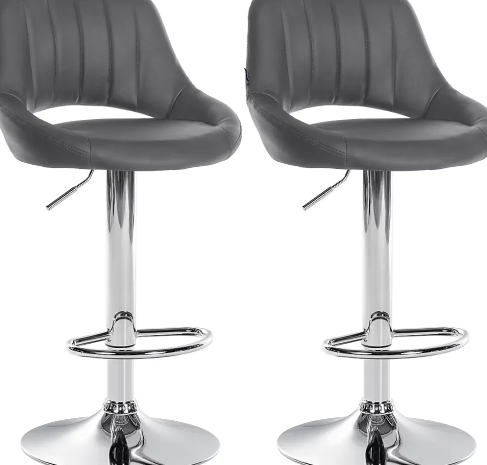 Lot de 2 tabourets de bar Milet similicuir, Chaise de bar pivotante avec repose-pieds et dossier Métalchromé/Gris