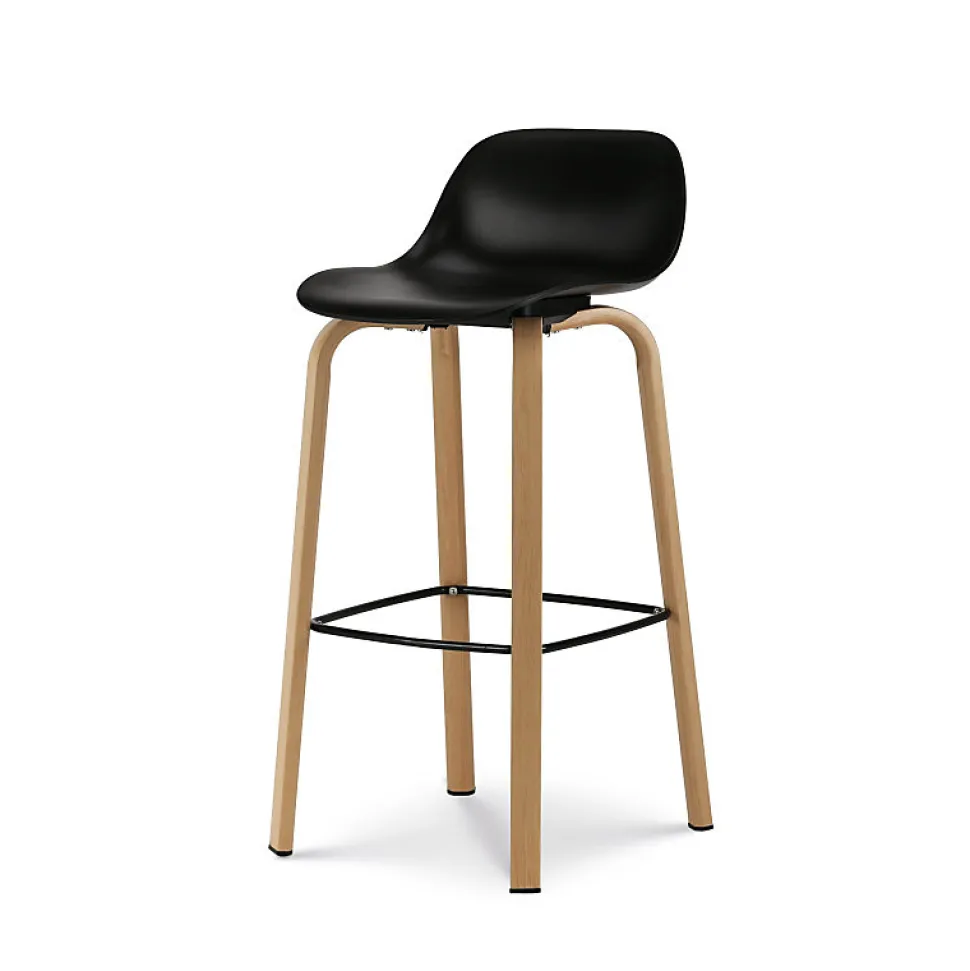 KOSMI – Lot de 2 tabourets de bar noirs style scandinave avec pieds effet bois en métal – Hauteur 66cmTabouret moyen idéal pour votre îlot de cuisine ou bar à la hauteur d’un plan de travail (généralement entre 90 et 95 cm de hauteur).Moderne et confortable, tabouret design style scandinave.Cette chaise de bar décorera votre intérieur de salon, salle à manger ou cuisine.