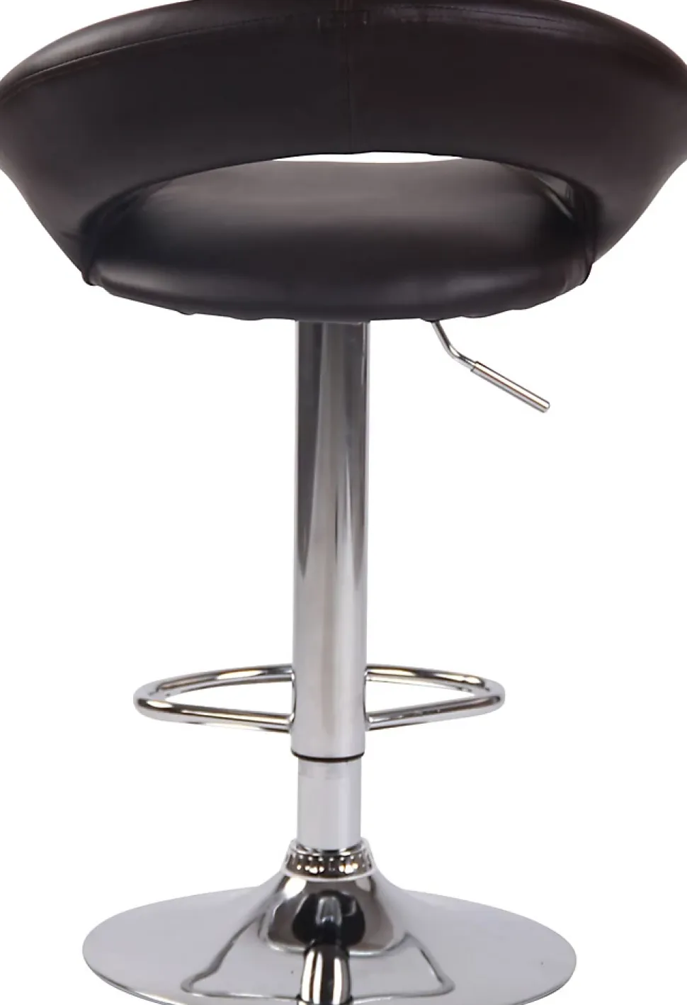 Lot de 2 Tabourets de Bar Olinda en similicuir Cet ensemble de 2 tabourets de bar est à la fois stylé et confortable. Grâce à sa surface d’assise et à son dossier généreusement rembourrés, ce lot de 2 chaises hautes de bar offre une posture confortable, même après de longues périodes d’utilisation. Le siège est confortablement rembourré et revêtu d’un similicuir de haute qualité aussi résistant que facile à entretenir. Ce modèle est réglable en hauteur et pivotant à 360°. Autant d’atouts qui permettent un confort optimal et une flexibilité de mouvement absolue. Ces tabourets de bar reposent sur un piétement en métal aspect chromé, noir mat ou blanc mat ( au choix). Le piètement, doté d’un repose-pieds pratique, est particulièrement résistant et stable. Composition du matériau: 100% PolyuréthaneDimensions (environ)Hauteur : 80 – 101 cmLargeur : 53 cmProfondeur : 47 cmHauteur assise : 60 – 81 cmSurface assise (LxP) : 45 x 39 cmHauteur dossier : 22 cmHauteur du repose-pieds: 21 cmCapacité de charge max.: 120 KgPoids : 6 kgAssiseRevêtement : SimilicuirAssise, dossier et accoudoir rembourrésPiètementMatériel : Métal chromé, noir mat et blanc matStabilité et mobilitéParticularitésDesign moderne et confort optimalRevêtement solide et durableConseils d’entretienTâches légères à nettoyer avec un chiffon en coton humideNe pas utiliser des détergents de ménage