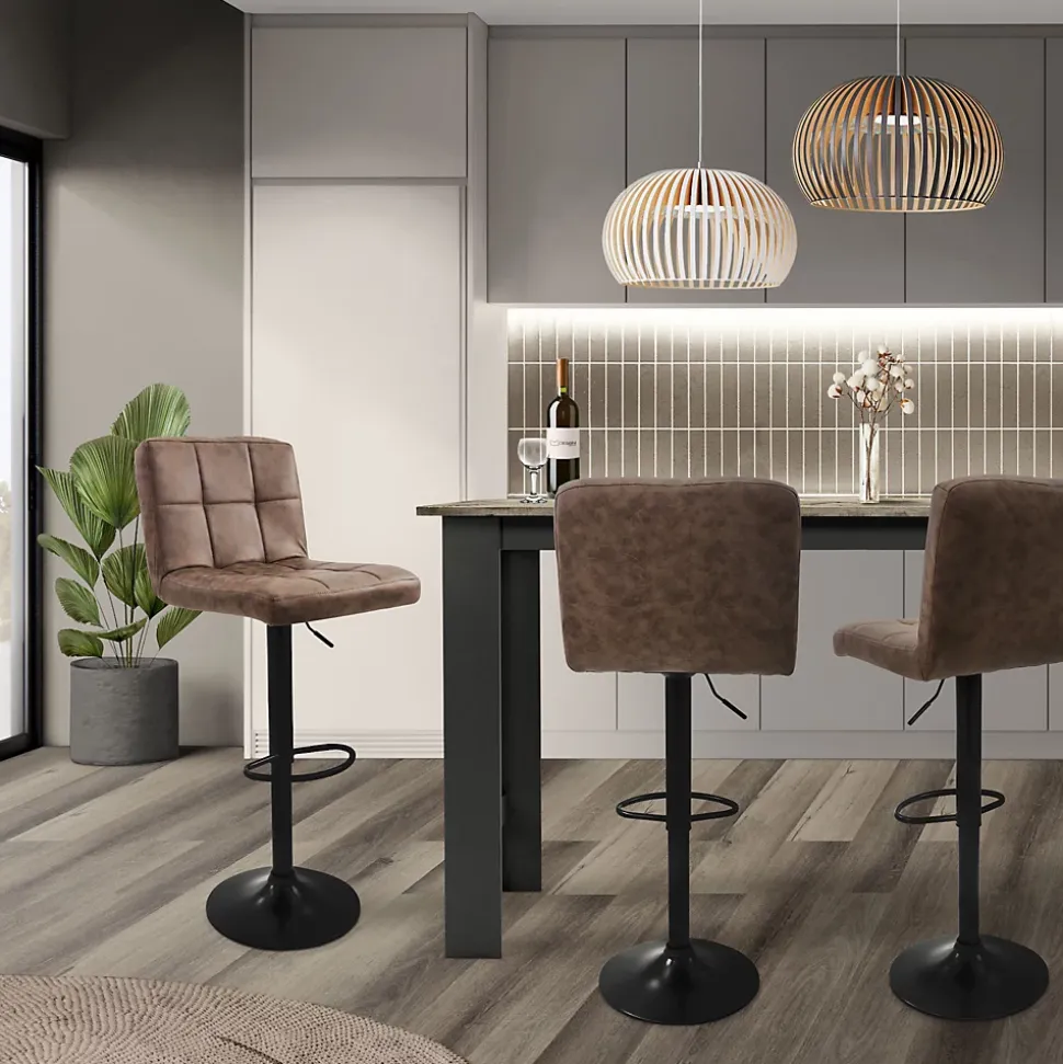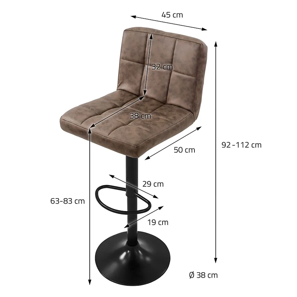 Description du produit :Découvre le style intemporel et le confort avec notre tabouret de bar en similicuir – Le complément parfait pour ton intérieur !Tu souhaites ajouter une touche d’élégance et de confort à ton espace de vie ? Notre tabouret de bar recouvert de similicuir est le choix idéal pour tous ceux qui sont à la recherche d’un siège élégant et facile d’entretien.Pourquoi choisir notre tabouret de bar en similicuir ?1) Esthétique et durabilité : le revêtement en similicuir confère non seulement un aspect attrayant au tabouret de bar, mais garantit également sa durabilité et un entretien facile. Découvre le luxe du cuir véritable sans les contraintes d’un nettoyage spécial.2. design intemporel : le tabouret de bar présente un design intemporel qui s’intègre parfaitement dans différents styles d’aménagement. Que ce soit dans la cuisine, au comptoir ou dans le bar de la maison, ce tabouret attirera tous les regards.3. une assise confortable : l’assise rembourrée assure un confort d’assise maximal. Que tu savoures un verre ou que tu prennes un repas, ce tabouret de bar t’offre une assise parfaite.4. construction robuste : la construction robuste garantit non seulement une position assise sûre, mais aussi une utilisation durable. Ce tabouret est prêt à t’accompagner pendant de nombreuses années.Caractéristiques :Avec repose-piedsRevêtement robuste en similicuirRéglable en hauteurHauteur d’assise entre 63 et 83 cmContenu de la livraison :2 x tabouret de bar