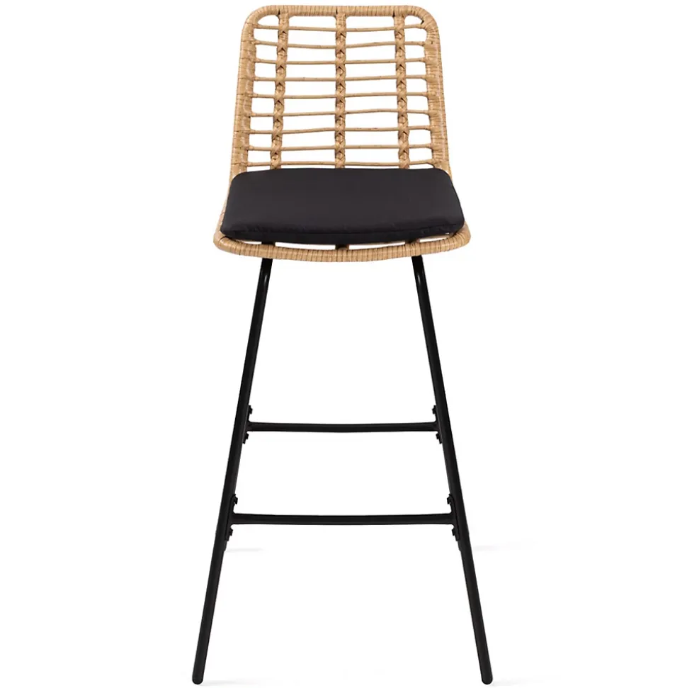 Laissez-vous tenter par ce lot de 2 tabourets de bar SUMMER effet rotin et pied noir qui modernisera l’espace de votre cuisine ou votre salle à manger ! Dotés d’une jolie assise effet rotin, d’un coussin déhoussable noir et d’un pied en métal noir, ils apporteront une touche bohème très chic à votre pièce de vie et sublimeront votre intérieur. L’alliance du rotin et du métal noir s’adaptera parfaitement dans une décoration industrielle, bohème ou contemporaine. Le piétement en métal noir assure un maximum de stabilité tandis que le repose-pieds vous garantit un confort optimal ! Alliez confort et design et optez pour ce lot de 2 tabourets de bar SUMMER qui trouvera facilement sa place dans votre intérieur ! Dimensions des tabourets de bar SUMMER effet rotin pied métal noir Dimensions globales : Longueur 47 cm x largeur 52 cm x Hauteur 102 cmDimensions de l’assise : L. 43 x l. 41 x H. 71.5 cm Hauteur du dossier : 33 cm Hauteur du repose-pied : 26 cmMatériaux : assise en cordage plastique effet rotin, pied en métalVendu en lot de 2 tabouretsÀ monter soi-mêmeRetrouvez l’ensemble de nos tabourets de bar sur notre boutique en ligne !