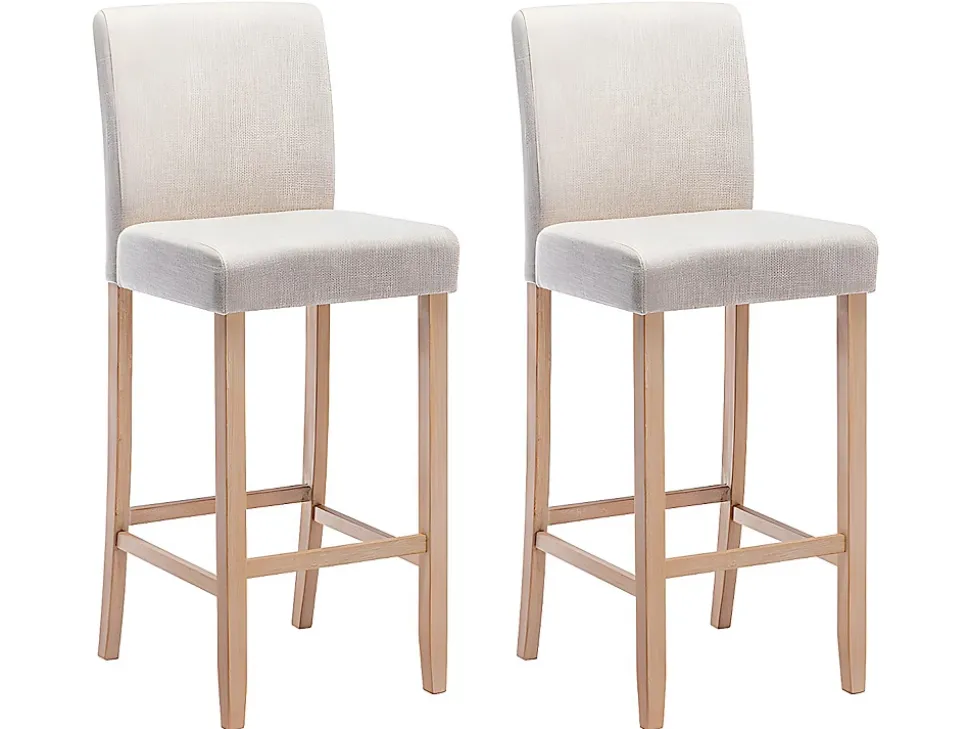 - Lot de 2 tabourets de bar ROVIGO – Matières : Tissu et pin massif – Piètement : Hévéa massif – Coloris : Beige – Dimensions : L50 x P47 x H116 cm – Hauteur d’assise : 81 cm – Envie d’une assise confortable? Choisissez les tabourets ROVIGO !