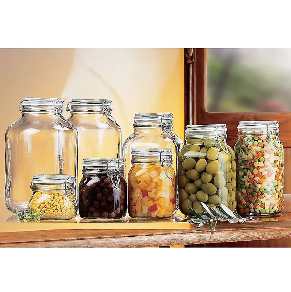 Bocal de conservation pour stocker les aliments secs, confiture, fruits, ingrédients, etc. Ce pot de conservation a un couvercle avec une charnière. L’anneau en caoutchouc garantit que le couvercle ferme le bocal de manière étanche à l’air et aux fuites. Idéal pour garder et conserver hermétiquement tous les arômes et les odeurs des aliments fraîchement préparés.Dimensions : Diamètre 8.3 x Hauteur 7.1 cmMatière : verreCouleur : transparentPoids : 2.4 kgCapacité : 12.5 cl