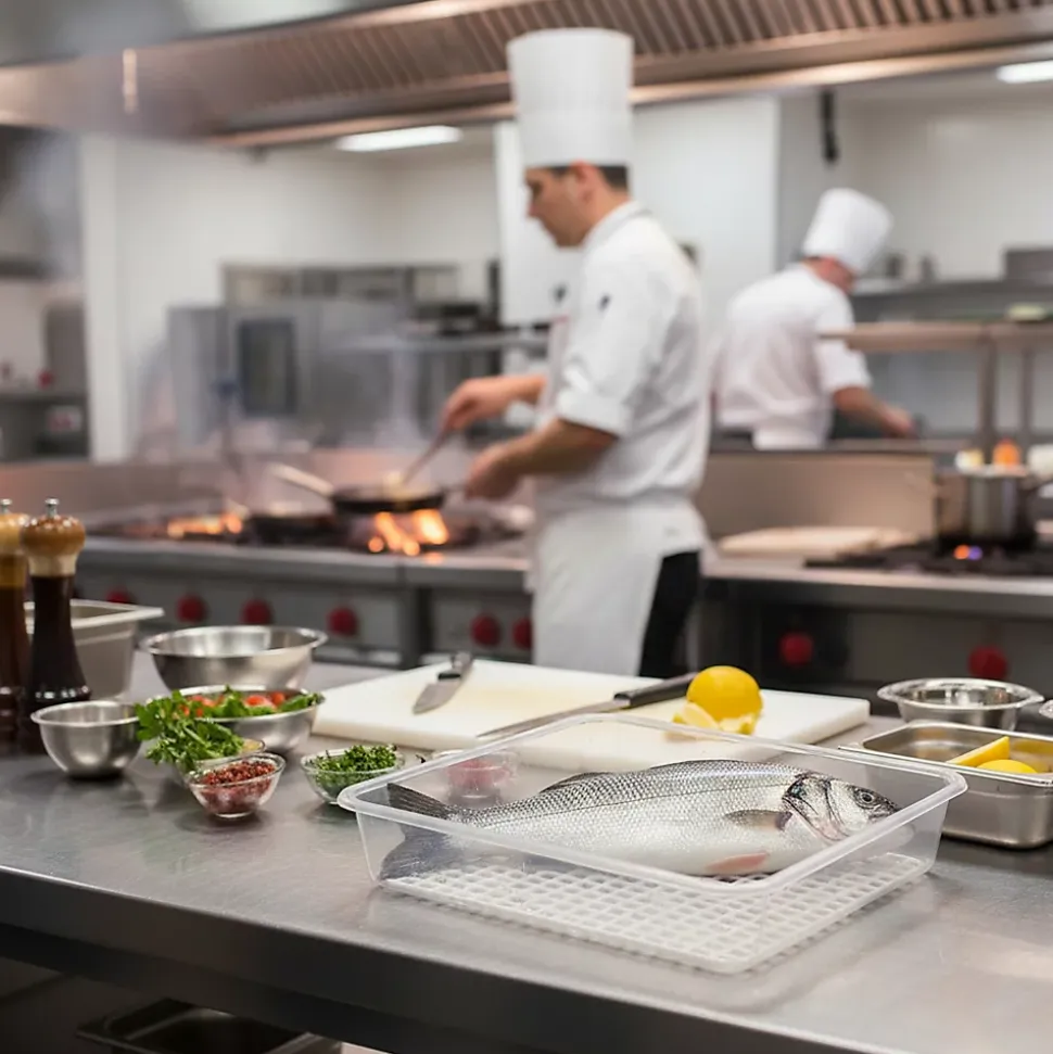 ❗ Bac de décongélation avec grille : Idéal pour l’hôtellerie, les cuisines, les restaurants, les salles à manger… Sans BPA ❗Les bacs de décongélation Antihumedades sont fabriqués en polypropylène, parfaits pour décongeler des aliments tels que le poisson, la viande ou les légumes. Idéal pour les restaurants, les cuisines, les salles à manger et l’hôtellerie-restauration, car il est sans BPA, ce qui n’abîme pas les aliments et les protège pendant le stockage.Ces dégivreurs sont très durables. Ils résistent à des températures élevées jusqu’à 90 °C et à des températures basses jusqu’à -18 °C, ce qui les rend compatibles avec les micro-ondes et les réfrigérateurs. De plus, ils résistent aux chutes et à l’abrasion, et ne se déforment ni ne se fissurent avec le temps.Les barquettes Antihumedades avec grilles sont fabriquées en polypropylène et sont disponibles avec ou sans couvercle. Ce bac facilite la décongélation des aliments : grâce à son système de grilles, l’eau et les débris éventuellement présents lors de la décongélation sont filtrés. Ils permettent une conservation plus hygiénique des aliments. Ils résistent également aux produits chimiques du lave-vaisselle, ce qui permet de les laver aussi bien en machine qu’à la main : ils n’attirent ni les taches de graisse ni la saleté.
