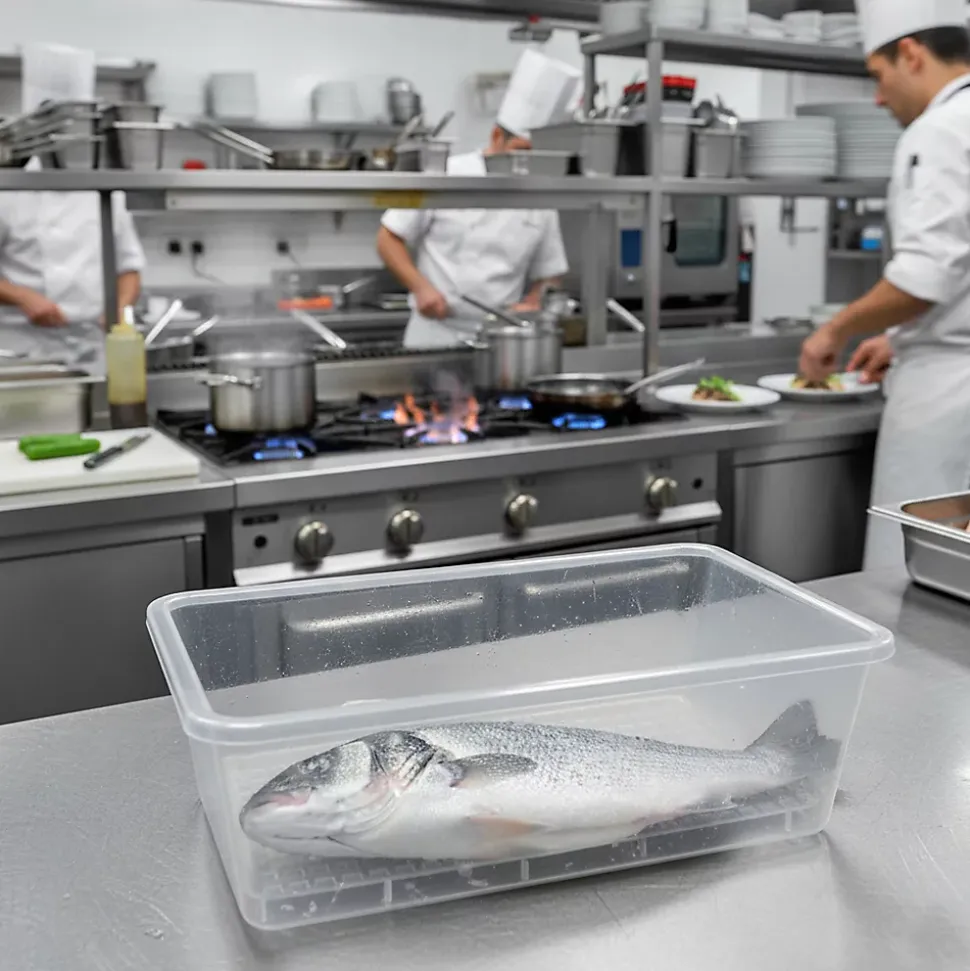 ❗ Bac de décongélation avec grille : Idéal pour l’hôtellerie, les cuisines, les restaurants, les salles à manger… Sans BPA ❗Les bacs de décongélation Antihumedades sont fabriqués en polypropylène, parfaits pour décongeler des aliments tels que le poisson, la viande ou les légumes. Idéal pour les restaurants, les cuisines, les salles à manger et l’hôtellerie-restauration, car il est sans BPA, ce qui n’abîme pas les aliments et les protège pendant le stockage.Ces dégivreurs sont très durables. Ils résistent à des températures élevées jusqu’à 90 °C et à des températures basses jusqu’à -18 °C, ce qui les rend compatibles avec les micro-ondes et les réfrigérateurs. De plus, ils résistent aux chutes et à l’abrasion, et ne se déforment ni ne se fissurent avec le temps.Les barquettes Antihumedades avec grilles sont fabriquées en polypropylène et sont disponibles avec ou sans couvercle. Ce bac facilite la décongélation des aliments : grâce à son système de grilles, l’eau et les débris éventuellement présents lors de la décongélation sont filtrés. Ils permettent une conservation plus hygiénique des aliments. Ils résistent également aux produits chimiques du lave-vaisselle, ce qui permet de les laver aussi bien en machine qu’à la main : ils n’attirent ni les taches de graisse ni la saleté.