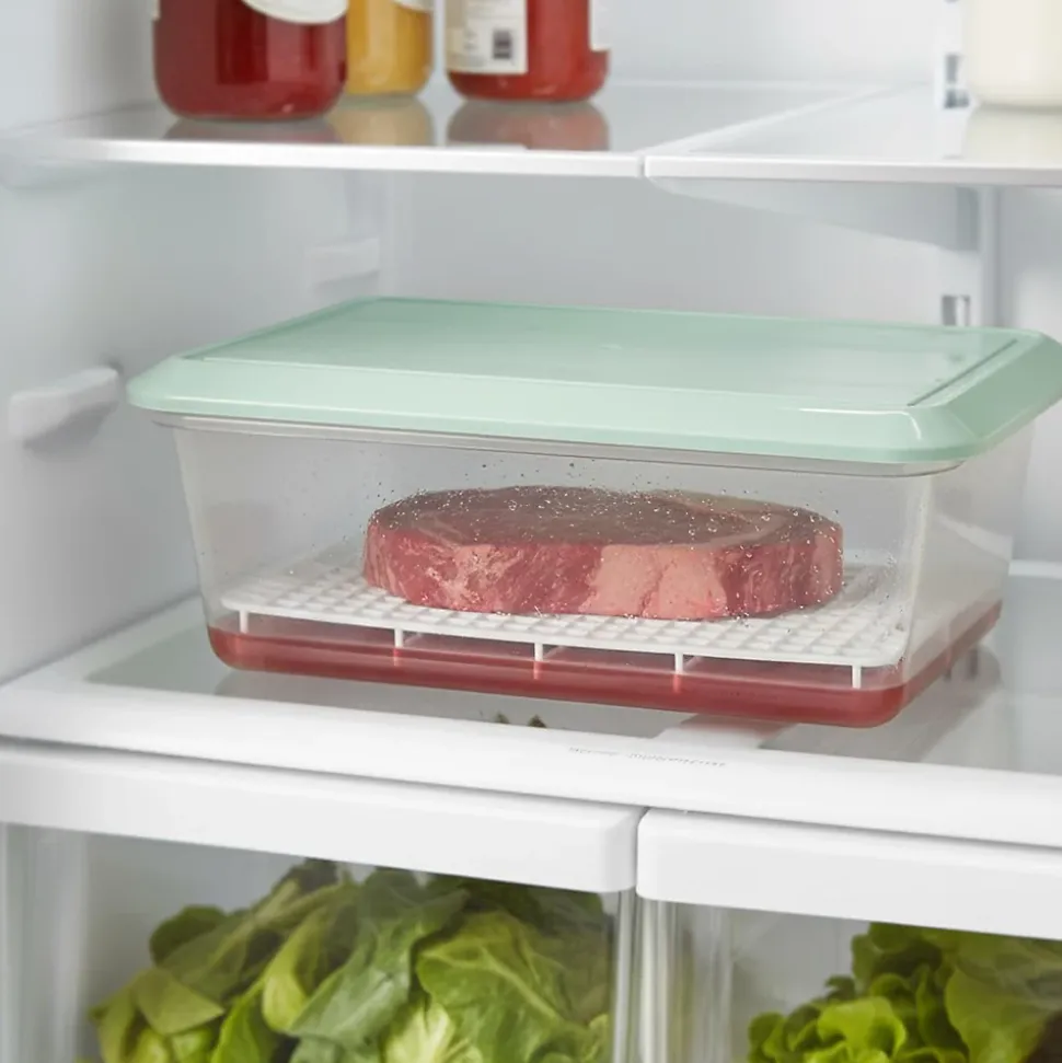 - BAC AVEC GRILLE ALIMENTAIRE : Dégivreur doté d’une grille rectangulaire en polypropylène, idéal pour les restaurants, les cuisines, les boucheries, les poissonneries, etc. Taille avec couvercle : 36 cm x 24 cm x 12.5 cm