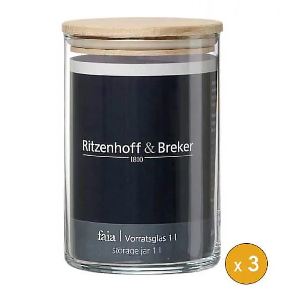 Bocal de conservation en verre cylindrique, avec capuchon en bois de hêtre avec joint d’étanchéité en silicone. Naturellement étanche aux arômes : le pot de conservation Faia protège les aliments secs des influences extérieures afin qu’ils restent frais et appétissants.Le corps est en verre de haute qualité, le couvercle est en bois de hêtre naturel et la bague d’étanchéité est en silicone. Capacité : 1 litreDiamètre : 10 cmHauteur : 16 cm Vendu en lot de 3 Bocaux de conservation.