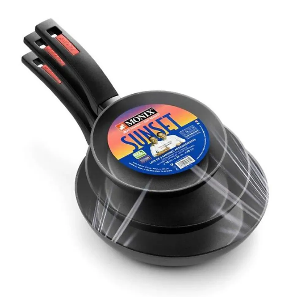 Matériau de haute qualité : En aluminium forgé, ces poêles offrent une durabilité exceptionnelle et une répartition uniforme de la chaleur. Tailles variées : Comprend trois tailles différentes (18, 22 et 26 cm) pour s’adapter à divers besoinsDes culinaires, des petites sauces aux grands sautés. Compatibilité : Convient à tous les types de cuisinières, à l’exception des cuisinières à induction, ce qui les rend polyvalentes pour la plupart des foyers. Conception ergonomique: Avec des poignées ergonomiques qui assurent unGriffe confortable et sûre pendant la cuisson. Nettoyage facile : Surface antiadhésive qui facilite le nettoyage et permet de cuisiner avec moins d’huile, favorisant une cuisine plus saine. Esthétique moderne : Design élégant qui s’adapte à tous les styles de cuisineNa, en ajoutant une touche de sophistication. Spécifications Marque : Sunset Matériau : Aluminium forgé Diamètres : 18 cm, 22 cm, 26 cm Compatibilité : Ne convient pas à l’induction Poids du produit : Varie en fonction de la taille de la poêle Couleur : Généralement dans des tons oscUros pour un look moderne et élégant Ces poêles sont idéales pour tout amateur de cuisine à la recherche d’ustensiles polyvalents, durables et faciles à utiliser. Sa conception en aluminium forgé garantit une répartition rapide et uniforme de la chaleur, jeL’efficacité de la cuisson et la qualité des aliments préparés.