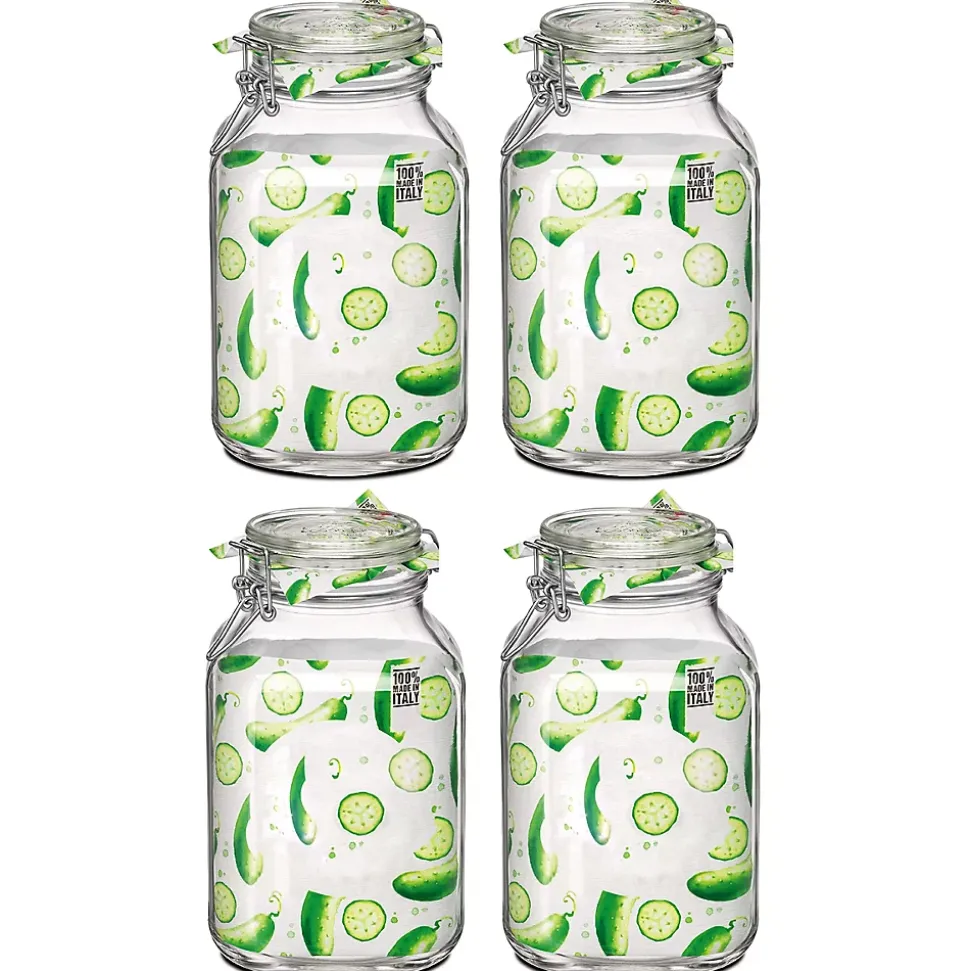 Bocal avec une capacité 4 L pour stocker les aliments secs, fruits, légumes et conserves au vinaigre, etc. Ce pot de conservation a un couvercle avec une charnière. L’anneau en caoutchouc garantit que le couvercle ferme le bocal de manière étanche à l’air et aux fuites. Idéal pour garder et conserver hermétiquement tous les arômes et les odeurs des aliments fraîchement préparés.Dimensions : Diamètre 16 x Hauteur 27.9 cmMatière : verreCouleur : transparentPoids : 7.2 kgCapacité : 4 L