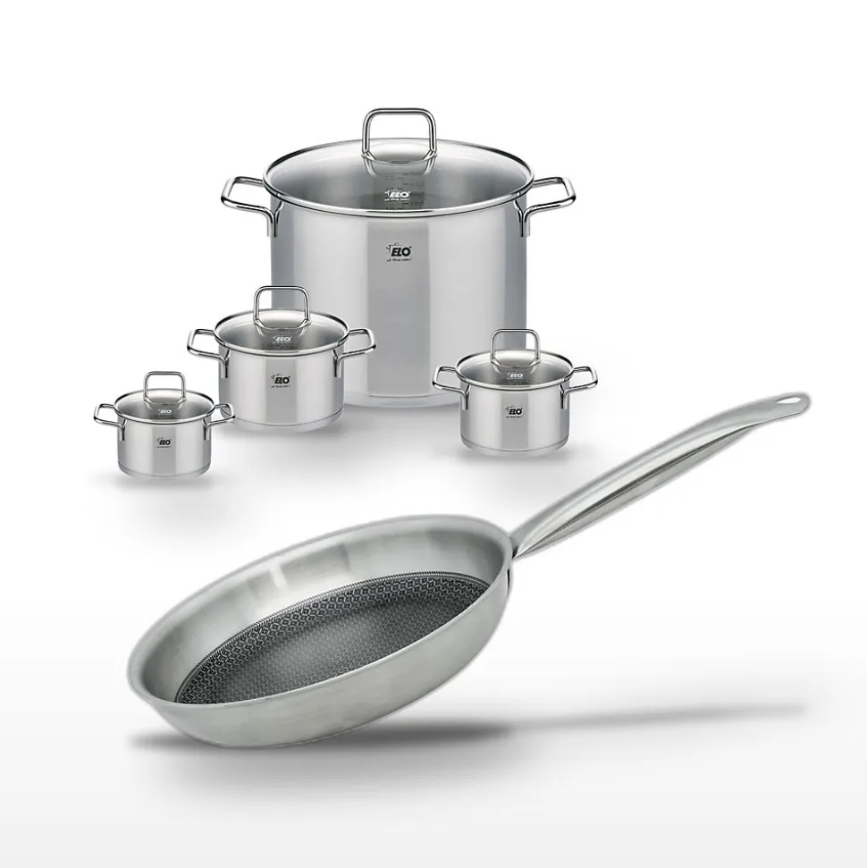 - DESCRIPTION : Ensemble Elo Relief Solution avec 4 faitouts en inox et une poêle 24 cm, pour une cuisine performante et élégante.