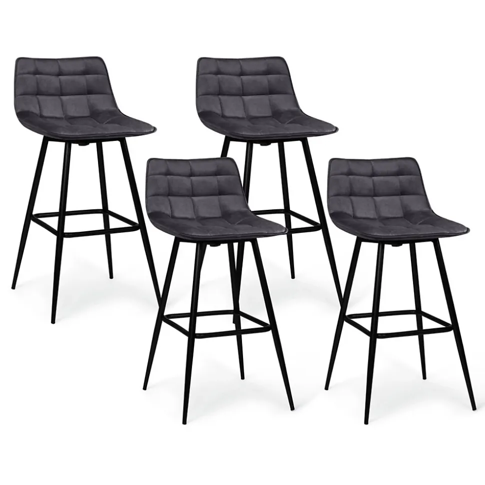 Aménagez votre cuisine, salle à manger, coin repas avec ce superbe lot de 4 tabourets MADY coloris gris foncé. Avec cet ensemble moderne et cosy, vous apporterez une touche tendance à votre intérieur. Leur coloris gris s’accordera facilement avec tous les styles de décoration. Dotés d’une assise moelleuse d’une profondeur de 35 cm, ils vous permettront d’être confortablement installé pendant vos repas en famille ou entre amis. Les tabourets au revêtement en tissu velours apporteront confort et douceur.Les 4 pieds en métal noir mat assurent robustesse et stabilité, tout en accentuant le design moderne et tendance de ces tabourets de bar.Grâce à leur style design, vous pourrez les placer dans la pièce de votre choix : autour de votre îlot central dans votre cuisine ou le long de votre bar. Profitez également d’un élément de décoration à petit prix, de quoi apporter modernité et design sans vous ruiner. L’association du tissu velours gris et des pieds en métal noir offre aux tabourets un esprit très tendance.Profitez de leur petit prix pour moderniser votre intérieur !Dimensions des tabourets MADY gris foncéDimensions globales : Longueur 45 x largeur 39 x Hauteur 88 cmProfondeur d’assise : 35 cmPieds en métal noir matRevêtement en veloursVendus en lot de 4À monter soi-même