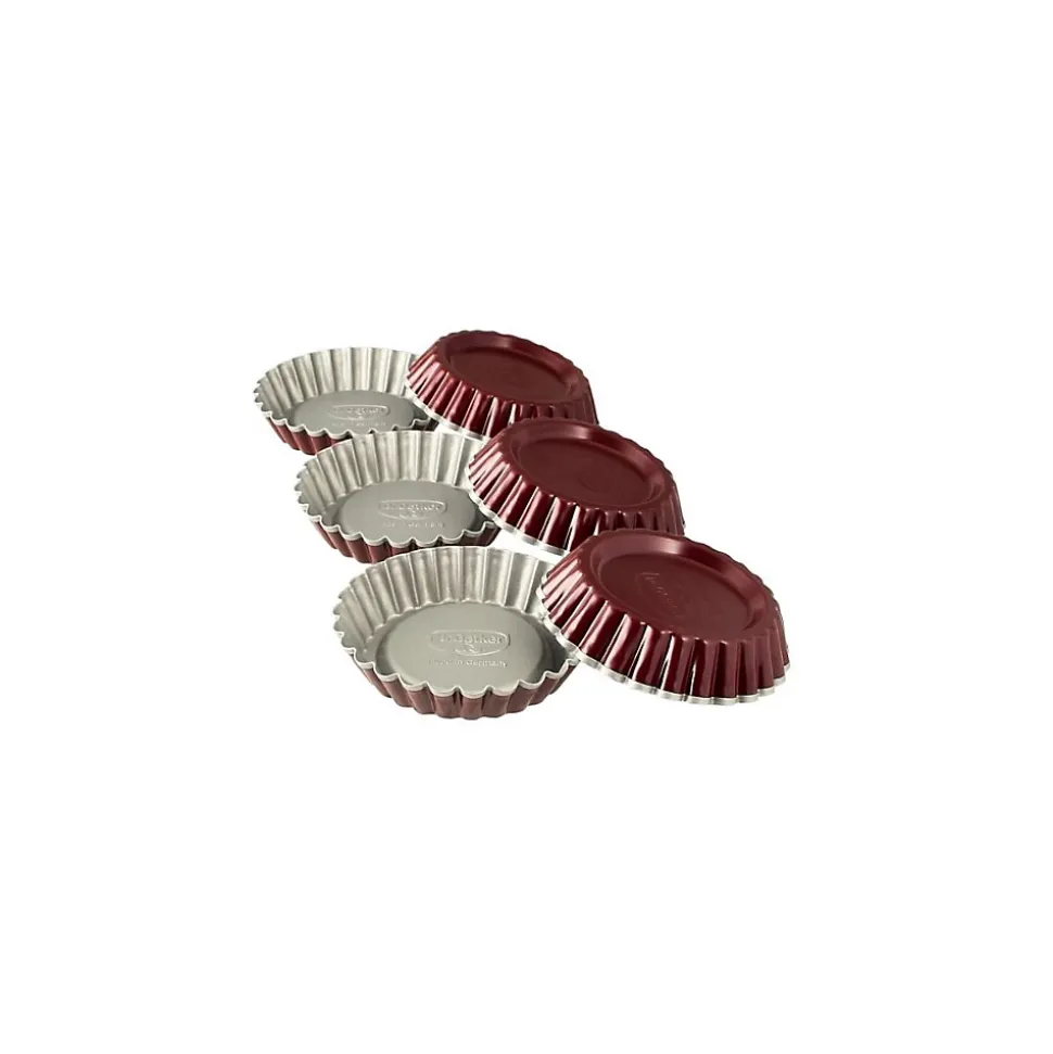 - COMPOSITION : De couleur rouge foncé à l’extérieur, ces mini moules à tartes sont fabriqués en acier et munis d’un revêtement antiadhésif.