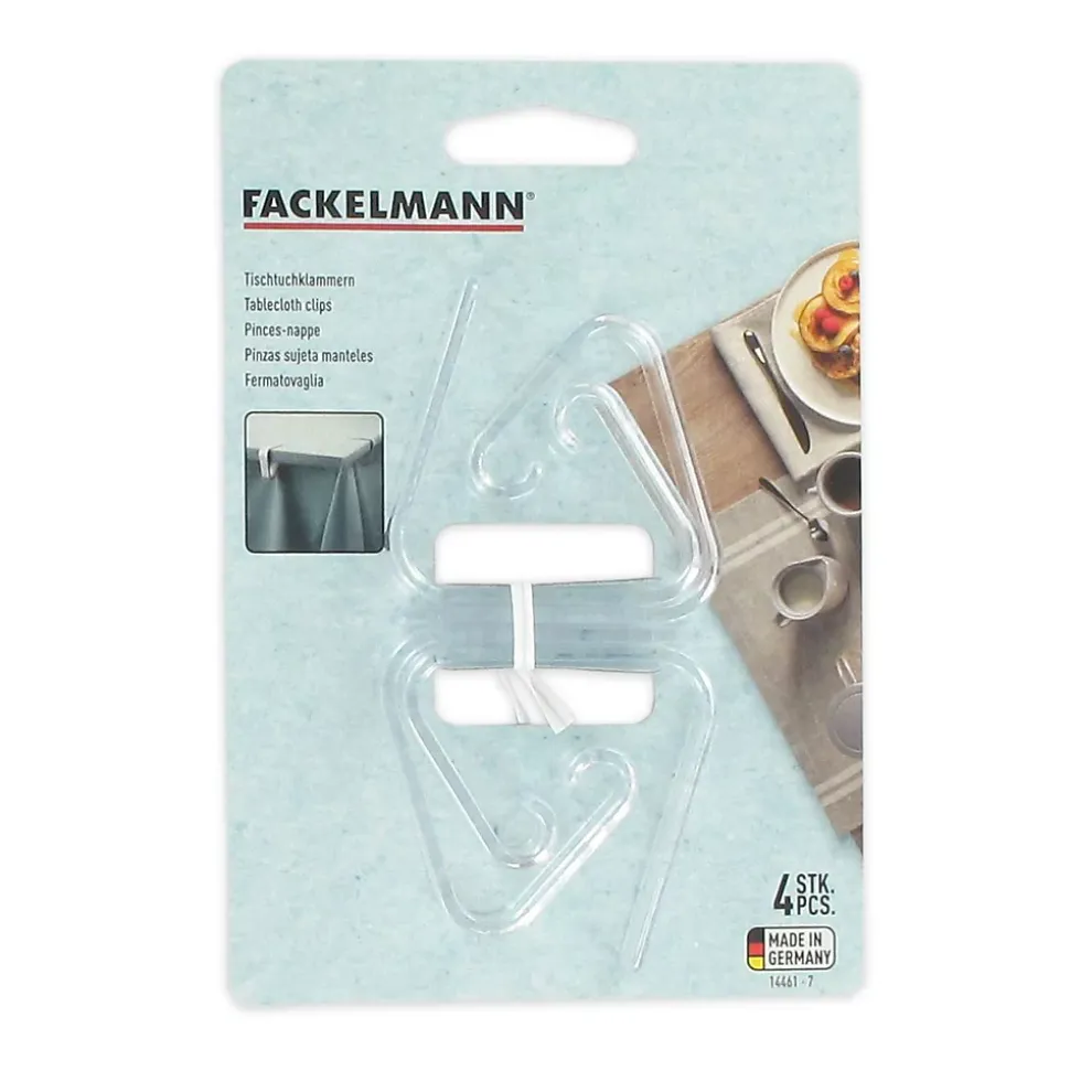 - DESCRIPTION : Fackelmann vous propose ce lot de 8 pinces à nappe pour ajuster la nappe à la hauteur de la table afin que la nappe ne s’envole pas durant le repas