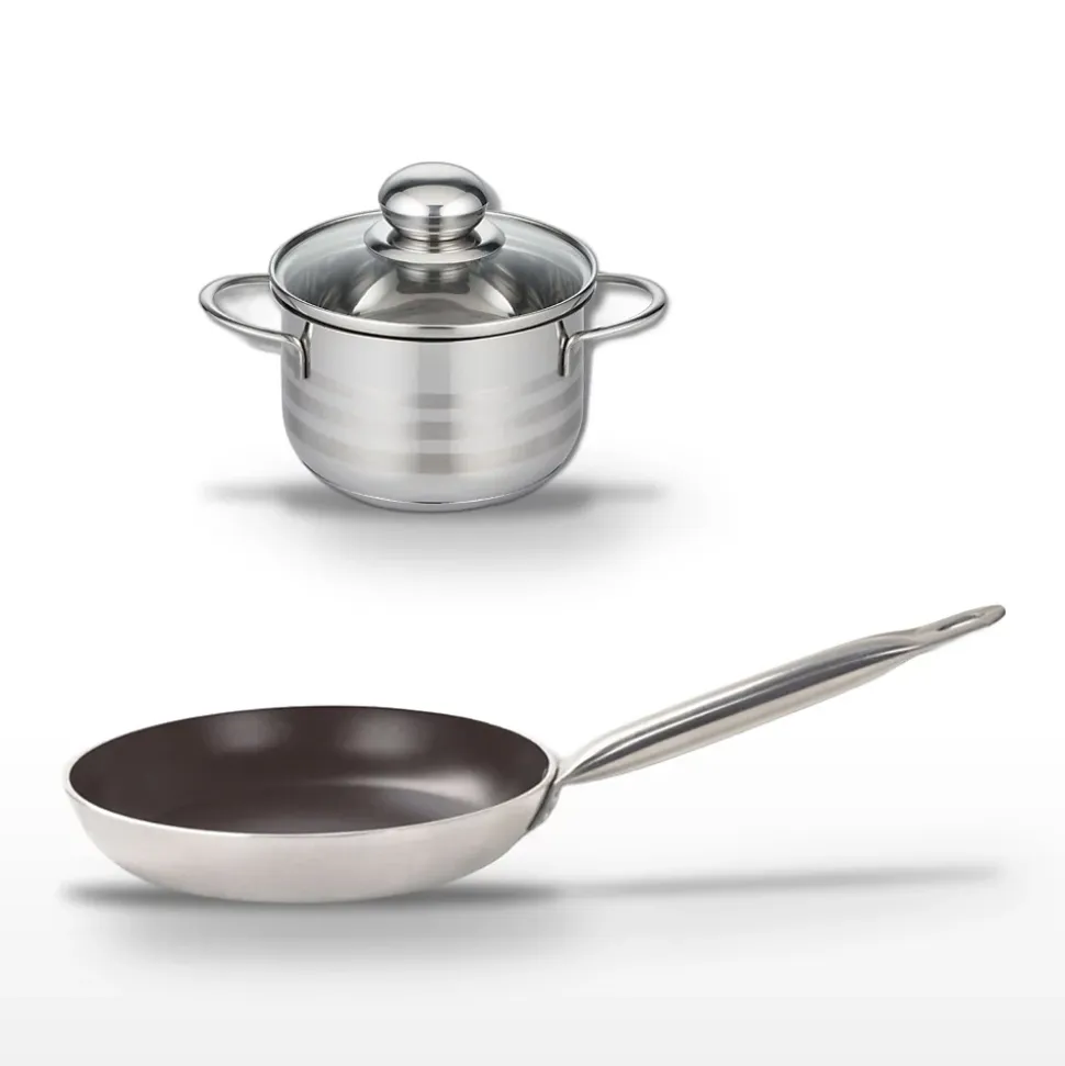 - DIMENSIONS : La poêle mesure 24 cm de diamètre et le faitout 12 cm, idéal pour diverses préparations culinaires.