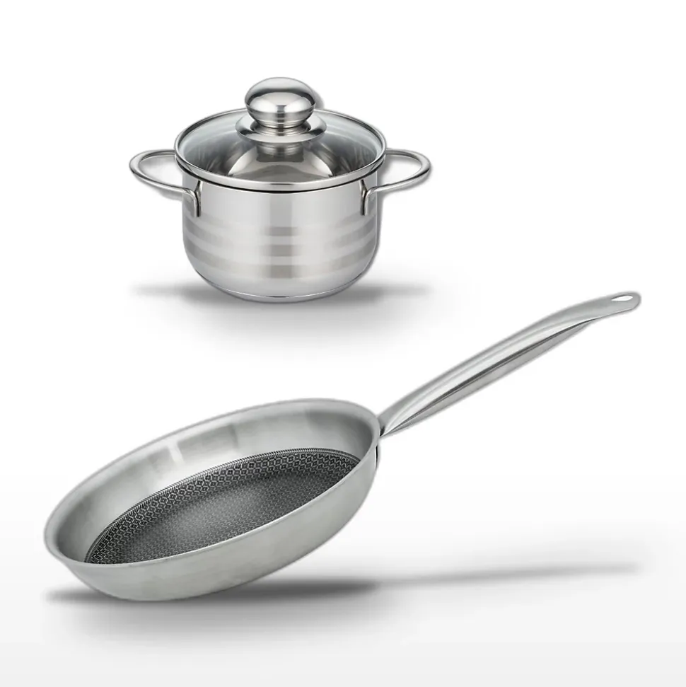 - DESCRIPTION : Le lot Elo Relief Solution comprend une poêle de 28 cm et un faitout de 14 cm, tous deux en acier inoxydable 18/10, offrant une cuisson homogène et sans accrocs grâce à leur revêtement antiadhésif sans PFAS.