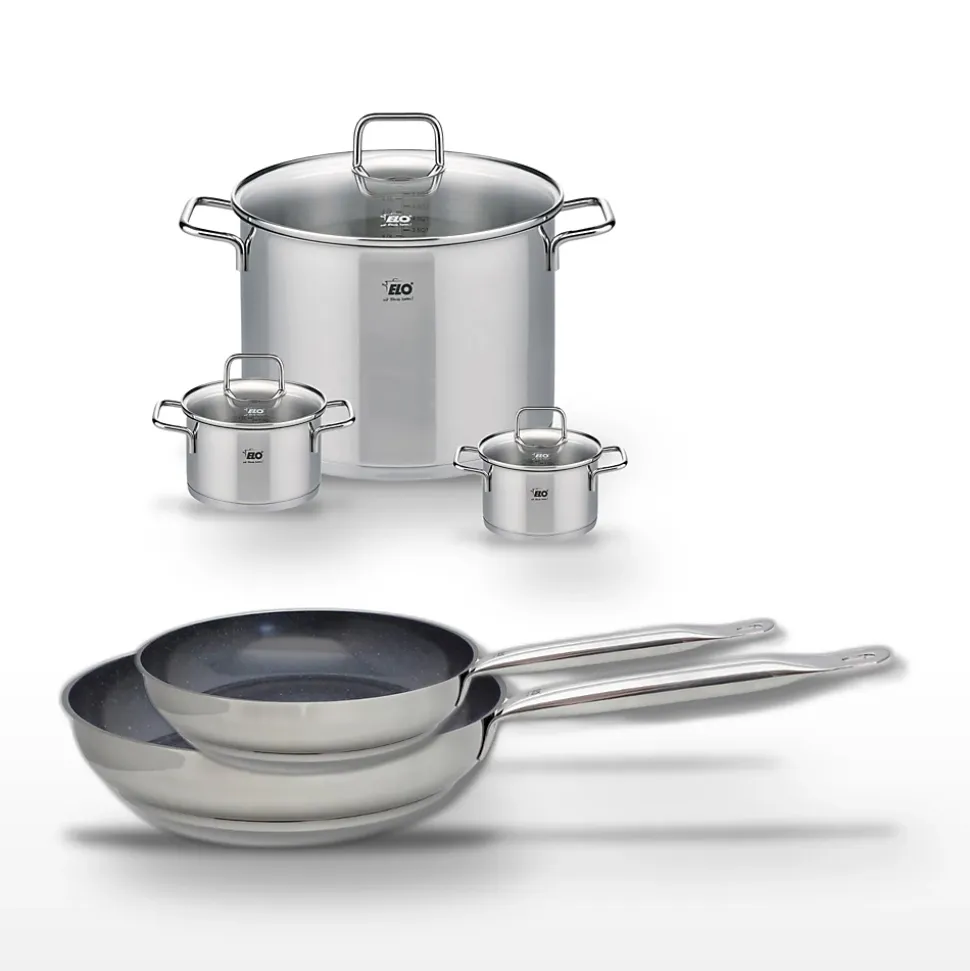 - DESCRIPTION : Ce lot Elo Profi Therm Platinum comprend des poêles céramiques sans PFAS et des faitouts en inox, garantissant une cuisson saine et efficace.