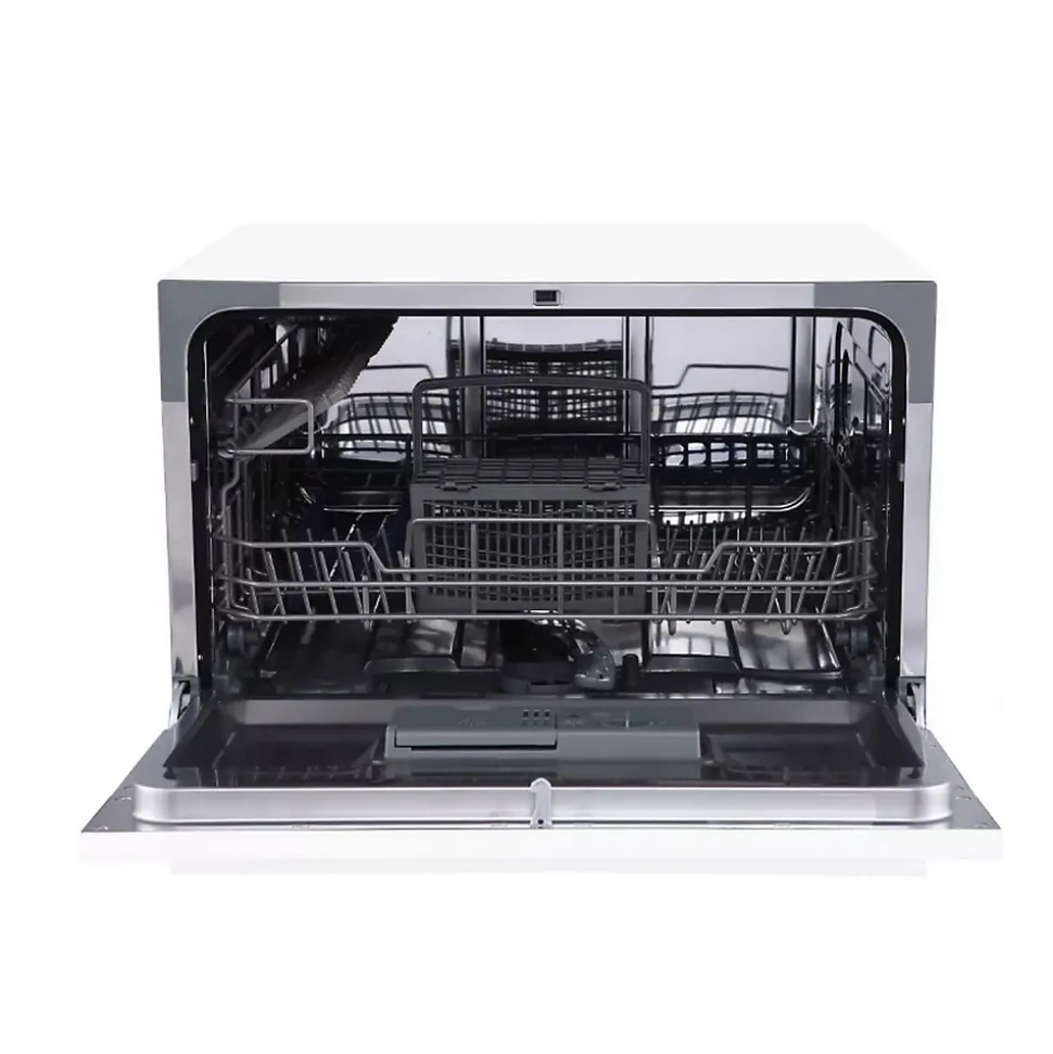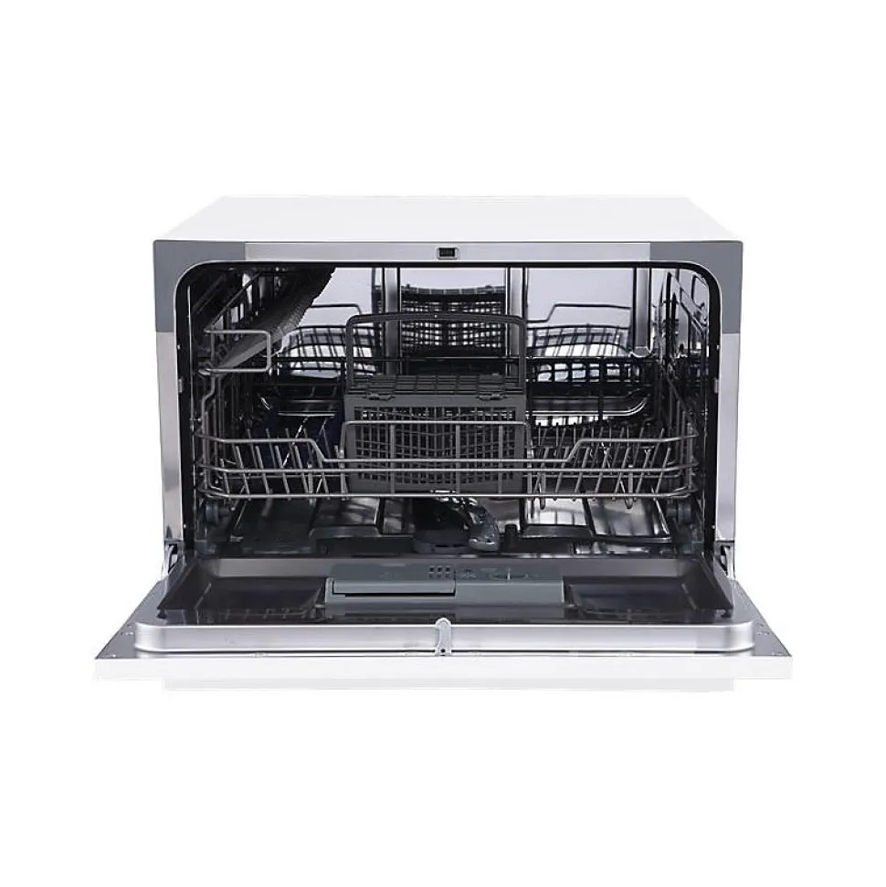 Lave-vaisselle compact – Ce lave-vaisselle compact et pose libre, idéal pour les petits espaces, offre une capacité de 6 couverts et une classe énergétique D. Il propose 7 programmes, dont intensif, éco, délicat, et rapide 30 min, adaptés à divers besoins de lavage. La fonction AutoDoor permet une ouverture automatique de la porte en fin de cycle pour un séchage optimisé. Le départ différé jusqu’à 24 heures offre une flexibilité d’utilisation. Doté d’un affichage LED, de voyants pour le liquide de rinçage et le sel, et d’une sécurité enfant, ce modèle fonctionne silencieusement avec un niveau sonore de 47 dB.