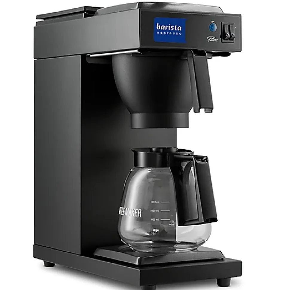 Cafetière professionnelle à filtre, inox, 1,8 litres, Mastro. Cette cafetière assure une production rapide et fiable grâce à sa verseuse en verre de 1,8 L. Ses plaques chauffantes indépendantes et ses commandes lumineuses garantissent un maintien en température optimal et une utilisation simple au quotidien. #html-body [data-pb-style=EX2IHHV]{justify-content:flex-start;display:flex;flex-direction:column;background-position:left top;background-size:cover;background-repeat:no-repeat;background-attachment:scroll}Machine à café filtre professionnelle Mastro avec verseuse 1.8LCette machine à café filtre compacte en inox s’intègre parfaitement sur un plan de travail, tout en garantissant un service optimal du café.Capacité optimale de 1,8 L : idéale pour répondre rapidement aux besoins en café dans les cafés, hôtels ou buffets petit-déjeunerVerseuse en verre (inclu) : visibilité immédiate du niveau de café pour une gestion efficace du serviceMaintien en température performant : deux plaques chauffantes indépendantes pour cons