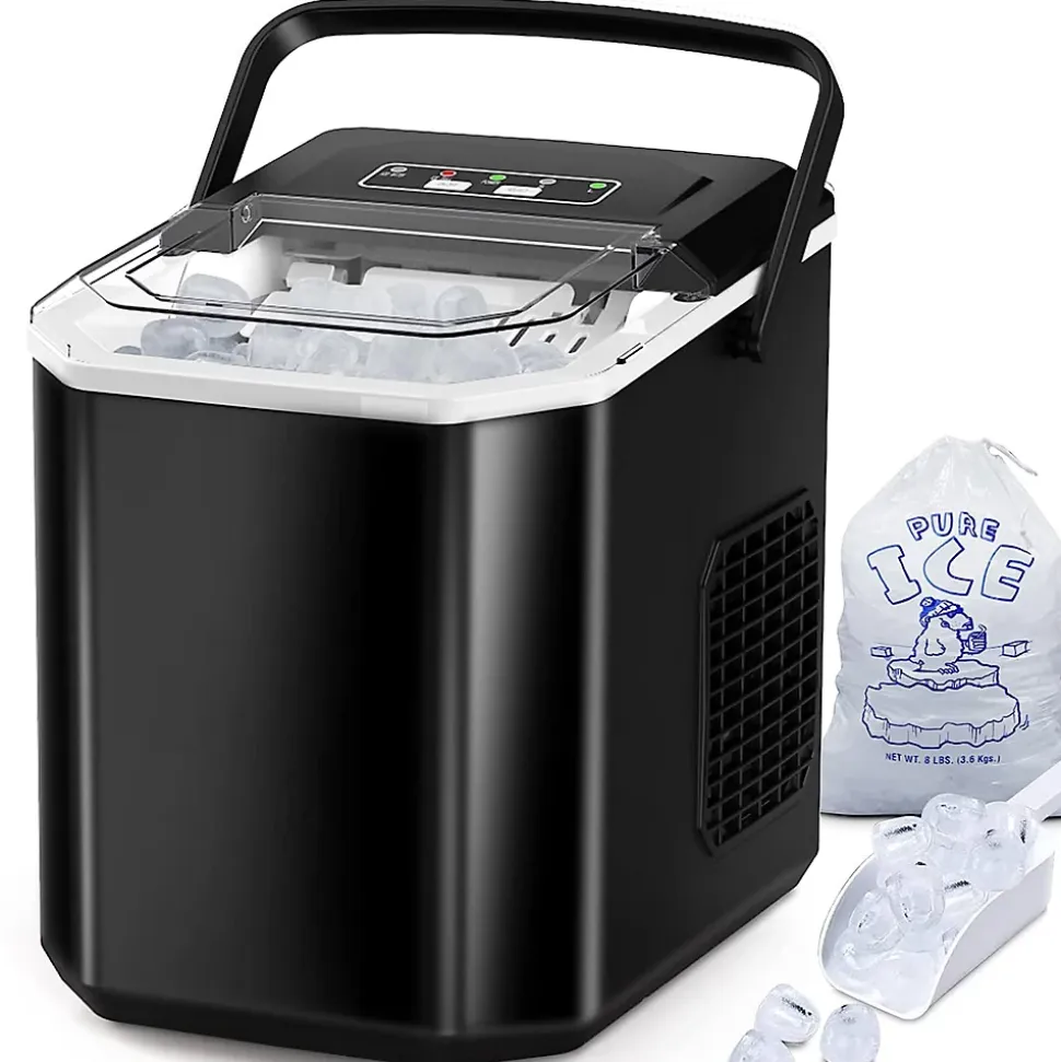 Notre machine à glacons utilise un condenseur à ailettes et un ventilateur de refroidissement, ce qui accélère la production de glace. Elle peut produire 9 glacons en seulement 6 minutes, ce qui en fait le choix parfait pour les personnes ayant besoin de glace à la demande.Avec notre fonction de nettoyage automatique intégrée, vous pouvez facilement nettoyer votre machine à glacons en un seul clic, libérant ainsi vos mains et la gardant propre et hygiénique.Le niveau sonore de la machine à glacons pendant le fonctionnement est inférieur à 40 dB, ce qui équivaut au son d’un chuchotement humain, assurant ainsi qu’elle ne cause aucune perturbation pendant le travail ou les études.Il suffit de brancher la machine à glaçons à une source d’alimentation, de remplir le réservoir d’eau et d’appuyer sur le bouton « ON/OFF » pour démarrer le processus de fabrication. Cette machine à glaçons présente un design moderne et élégant, ainsi que des matériaux de haute qualité, non toxiques et sans odeur, garantissant sa durabilité. Elle est également dotée d’une poignée pour faciliter son déplacement.Cette machine à glacons mesure 12 » x 9 » et pèse 6,2 kg. Sa taille compacte signifie qu’elle ne prendra pas trop de place sur votre comptoir, ce qui la rend adaptée à différents environnements tels que les maisons, les bureaux, les bars et les appartements. Elle est parfaite pour les fêtes, les rassemblements ou une utilisation quotidienne.