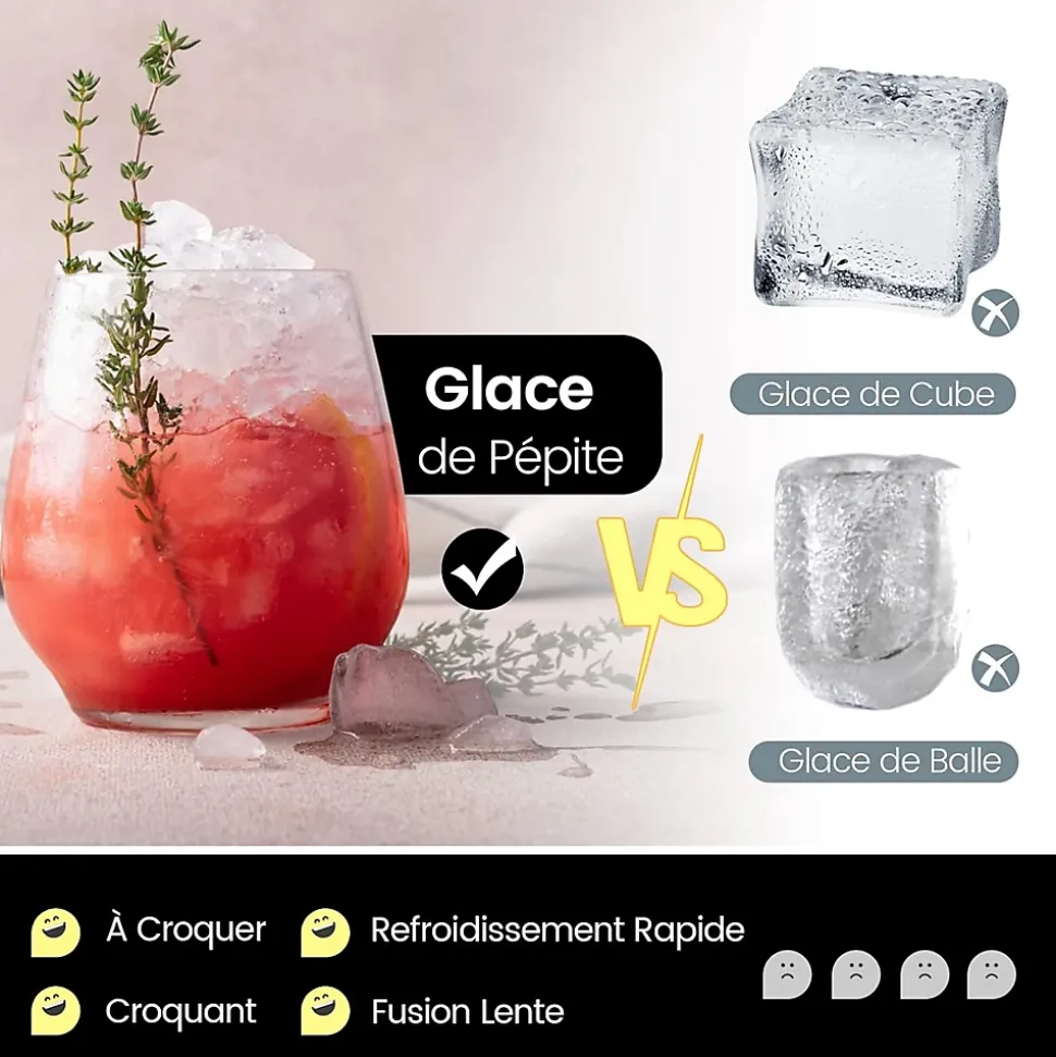 - CONVIENT POUR TOUTES LES OCCASIONS : Que vous organisiez une fête, travailliez dans un bureau ou teniez un bar, notre machine à glaçons fournit des glaçons frais et croustillants quand vous en avez besoin. Elle peut être placée sur un plan de travail pour un accès facile.