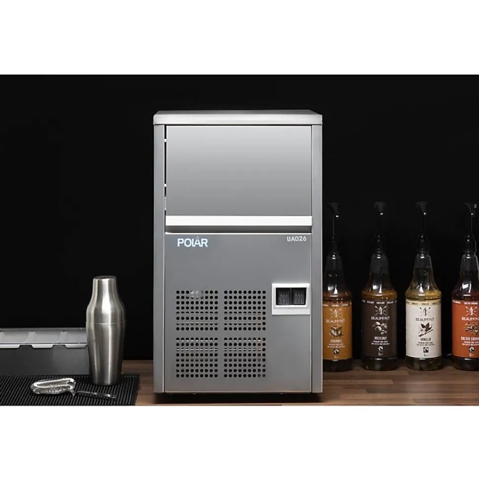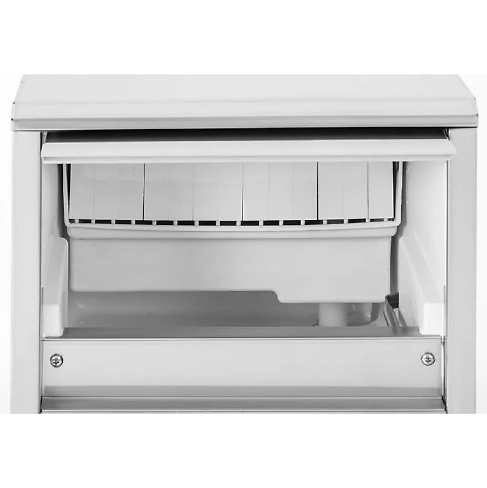 La machine à glaçons à aspersion produit de la glace cristalline de qualité supérieure. La machine à glaçons à aspersion produit de la glace cristalline de qualité supérieure. Le système à aspersion est un excellent moyen de produire de la glace de qualité, transparente, plus solide et fondant moins vite que la glace des fabricants traditionnels. Le fonctionnement et l’entretien sont simples, avec des commandes en façade et une construction solide et facile à nettoyer. La machine à glaçons comprend également un cycle de nettoyage automatique pour conserver la glace propre et hygiénique tout au long des services. Le bac de stockage de 4 kg permet de toujours avoir des glaçons prêts à être utilisés à tout moment.Attention : cet appareil doit évacuer l’eau pour fonctionner et ne s’écoule que par gravité. Si la sortie de vidange est au niveau ou au-dessus de celle du point de vidange de la machine, une pompe externe sera nécessaire.Dimensions: 590(H) x 355(L) x 435(P) mmMatériel: InoxRéfrigérant: R290 / GWP 3Alimentation: 230VPoids: 26 kgPrise: OuiConstruction en acier inoxydable facile à nettoyer permettant de gagner du tempsSystème de fabrication de glace par aspersion – glaçons cristallins à chaque foisProduction maximale : jusqu’à 21kg/24hDimensions des glaçons : 32 x 31 x 35 mmProduit jusqu’à 18 cubes en forme de chapeau par cycleLe cycle de nettoyage automatique intégré maximise l’hygiène de la glaceVidange par gravitéBac de stockage de glace hygiénique et antibactérien. Capacité : 4kg Argent – l35.5- L0.1- P43.5- h59- Inox