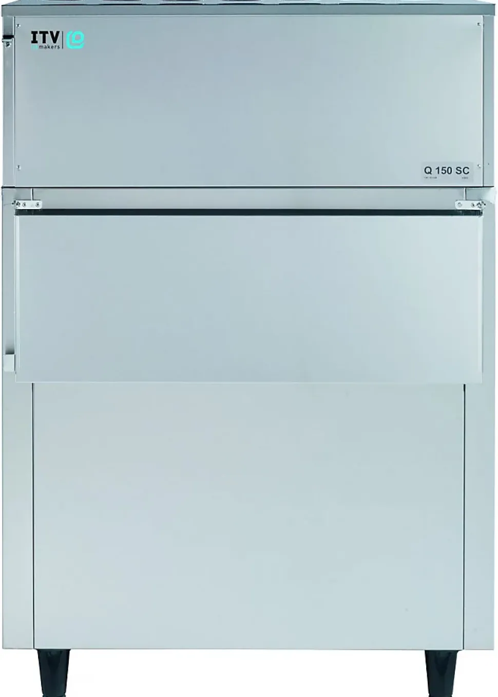 Machine à glaçons à injection Machine à glaçons – Gamme DELTA-MAX – Production (24H): 150kg – Stockage: 75kg – Carosserie inox AISI-304 18/10 – Système à injection avec gicleurs souples – Ce système évite la formation de calcaire – Refroidissement AIR – Glaçons pleins tronconiques 40g – Compresseur : 1+3/8 cv – Glaçons par cycle : 96 – Consommation d’eau (L/h) : 22,4 – Pompe surdimensionnée avec le corps immergé évitant le risque de panne – Vidange 20 mm – Pieds réglables de 95 à 165 mm