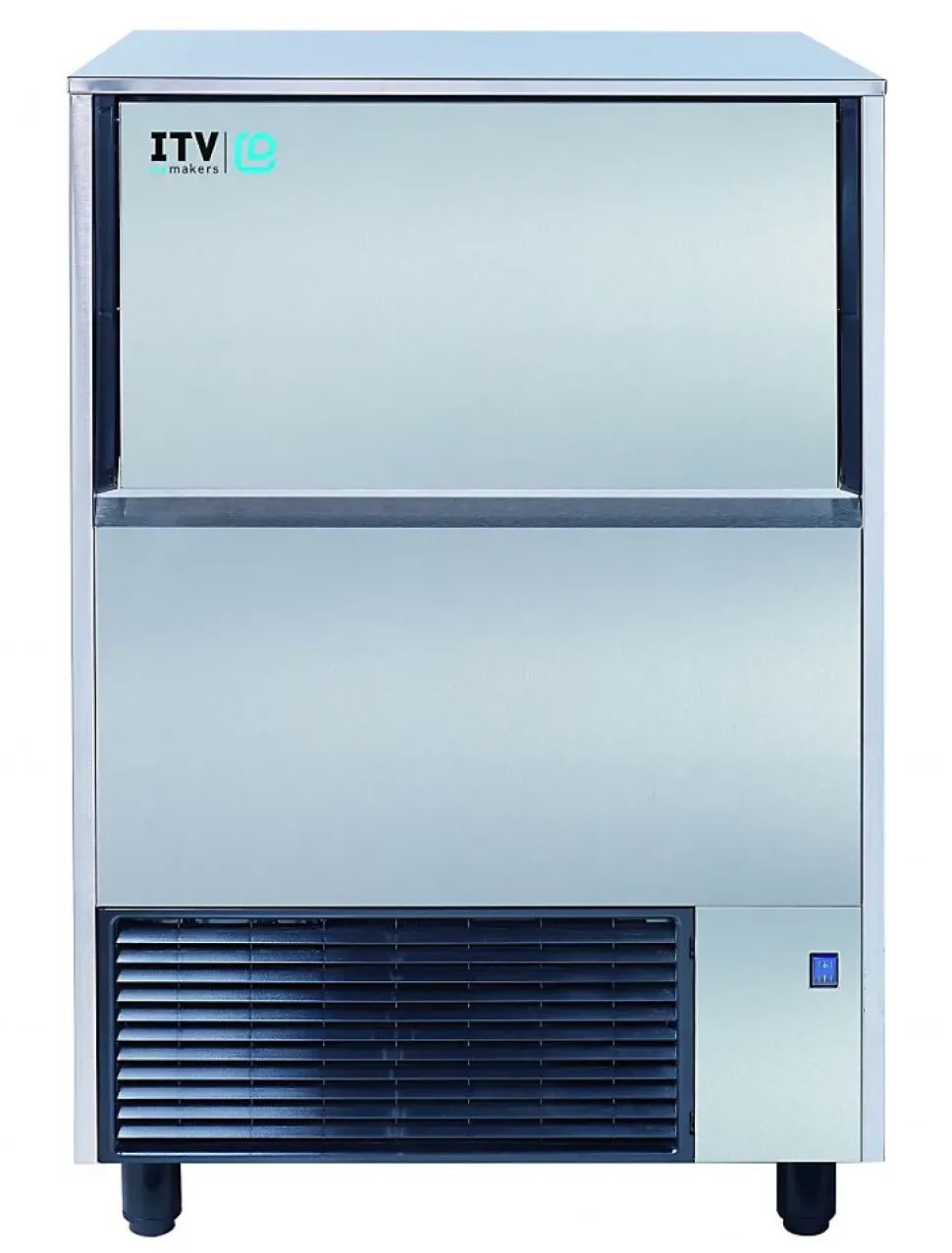 Machine à glaçons à palettes Machine à glaçons – Gamme QUASAR – Production (24H): 75kg – Stockage: 37kg – Carosserie inox AISI-304 18/10 – Système à palettes (adapté aux eaux les plus calcaires) – Refroidissement AIR – Glaçons creux 20 g – Compresseur : 1/2 cv – Glaçons par cycle : 55 – Consommation d’eau (L/h) : 10,6 – Pompe surdimensionnée avec le corps immergé évitant le risque de panne – Porte glissant vers l’intérieur – Arrêt électromécanique du cycle – Pas de thermostat de cuve – Vidange : 20 mm (par gravité) – Pieds réglables de 105 à 155 mm
