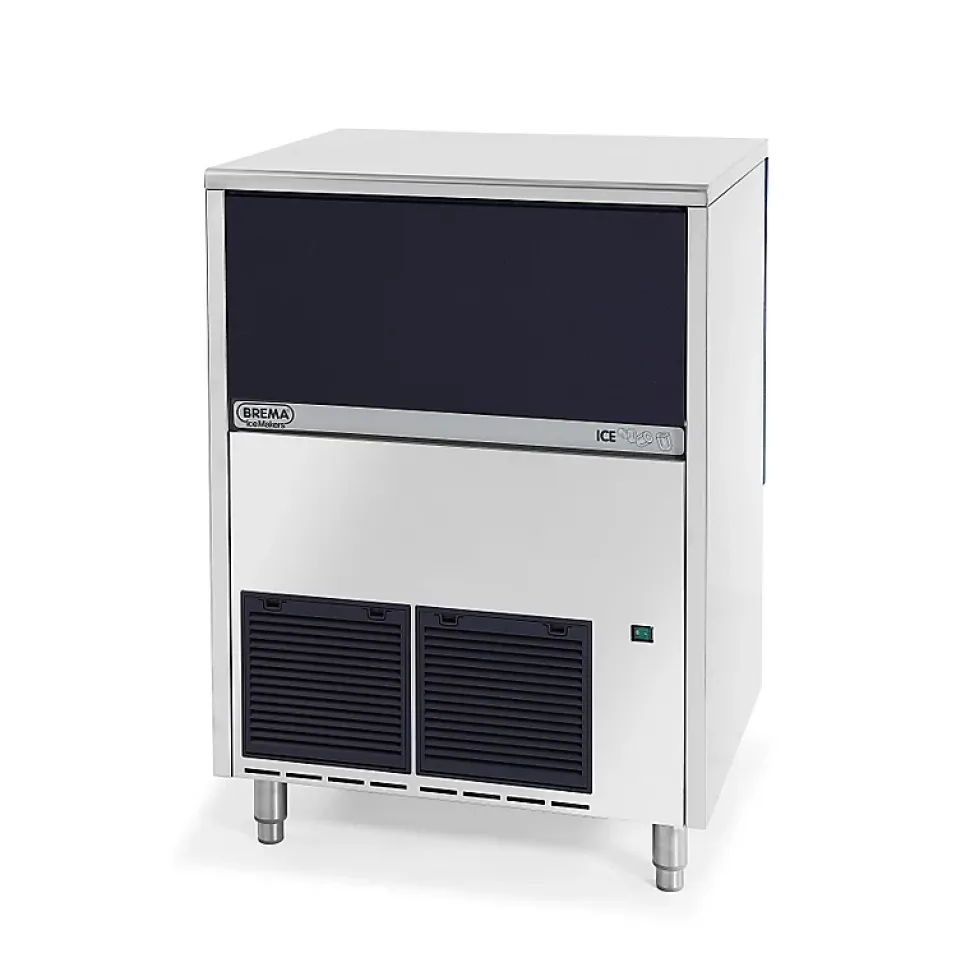 Machine à glaçons de la marque Brema Système à doigts et palettes.Fonctionnement électro mécanique.Évaporateur traité nickel/phosphore.Sécurité à la montée et à la descente du bac.Nettoyage du bac à eau à chaque cycle.Carrosserie en acier inox Aisi 304 finition scotch brite.Réserve en ABS alimentaire avec angles arrondis pour un nettoyage facilité.Réserve totalement isolée par mousse polyuréthane injectée 0% HCFC.Portillon isolé escamotable.Interrupteur marche/arrêt avec voyant de fonctionnement en façade.Sonde pour arrêt automatique de la production (réglable).Condenseur refroidi par air ( NB les condenseurs à eau sont préconisés en cas d’encastrement ou pour un usage dans une ambiance particulièrement chaude).Filtre à poussière sur condenseur en façade démontable sans outil, pour une maintenance facilitée.Pieds inox réglables hauteur 110 – 150 mm.Vidange par gravité (Ø 24 mm).Fluide frigorifique R-290. Livrées avec tuyau d’arrivée d’eau, d’évacuation et pelle à glace. Fonctionnent en ambiance de +10° à +43°C. Alimentation 230 V (mono) – 50 Hz.