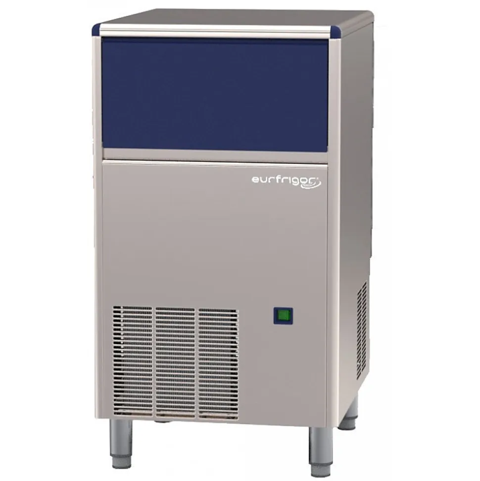 Machine à glaçons Furnotel Cette Machine à Glaçons 53 kg avec système à aspersion de la marque Furnotel.Le refroidissement s’effectue par eau.Groupe tropicalisé ambiance +43°CSystème à projection d’eauFiltre à poussière en façade sur modèles avec réserveRampe et injecteurs en inox facilement démontablesRefroidissement par eau (recommandé pour les machines encastrées ou en cas de températures ambiantes élevées)Carrosserie extérieure en inox AISI 304 Scotch BriteSonde pour arrêt automatique de la productionFournies avec une pelle à glaçonsGarantie pièces : 3 ansAlimentation : Mono 230 V + TLargeur : 497 mmProfondeur : 592 mmHauteur : 887 mmPoids : 43 kgType de gaz : R290Production / 24 H : 49 kg (Production donnée pour une T° ambiante de +21°C et une T° eau +15°C)Capacité réserve : 25 kgConsommation électrique : 450 W (Consommation électrique donnée pour une T° ambiante +43°CPieds : 110-150 mm