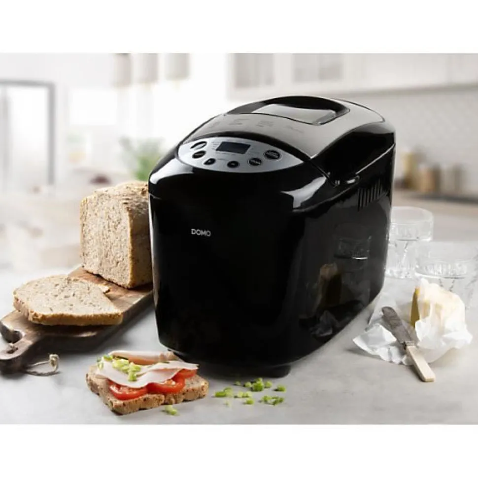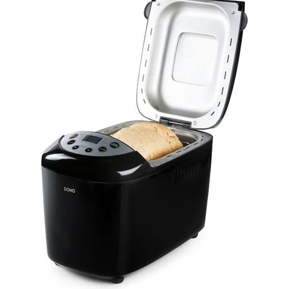 Découvrez la machine a pain automatique B3977 de DOMO, puissante avec 850 W. Réalisez des pains de 1000 g, 1250 g ou 1500 g grâce a ses 17 programmes de cuisson variés. Programmez jusqu’a 15 heures avec maintien au chaud automatique pendant 60 minutes et fonction mémoire en cas de coupure de courant pendant 10 minutes. Ajustez le degré de brunissage de la croûte avec l’écran LCD.