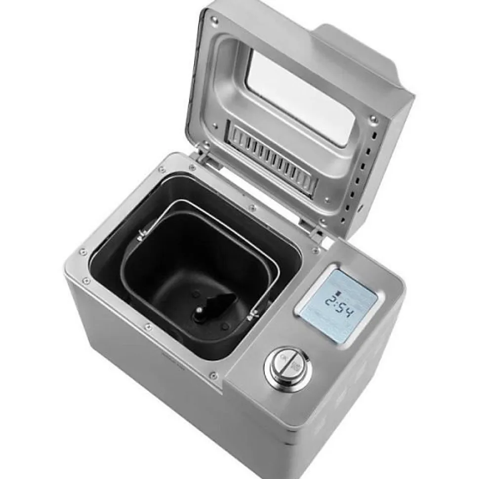 Machine à pain SENCOR SBR 2000SS en acier inoxydable, 550 W, 23 programmes, capacité jusqu’à 900 g, écran LCD, minuterie différée 13 h, maintien au chaud 60 min, moule antiadhésif lavable et accessoires inclus.