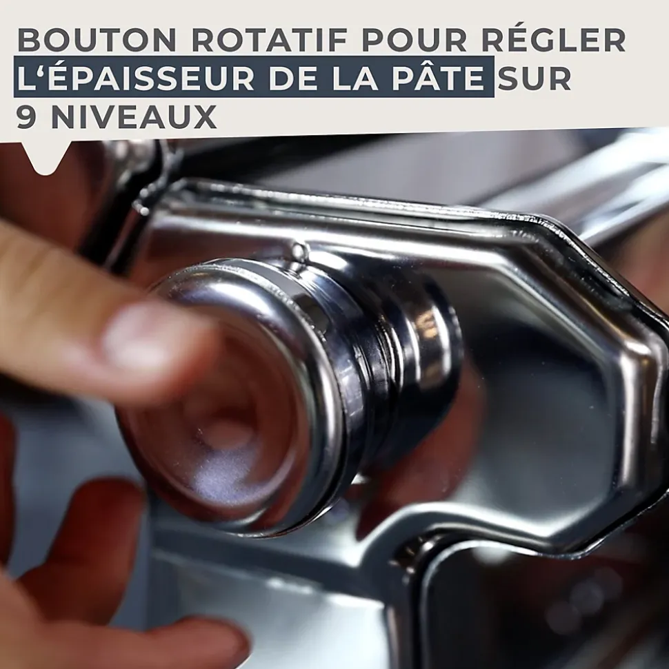 - DESCRIPTION : Machine à pâtes en acier inoxydable, la base de notre machine pour pâtes est anti-dérapante, cette machine est très facile d’utilisation grâce à sa manivelle ; elle est également facile à nettoyer car elle se démonte