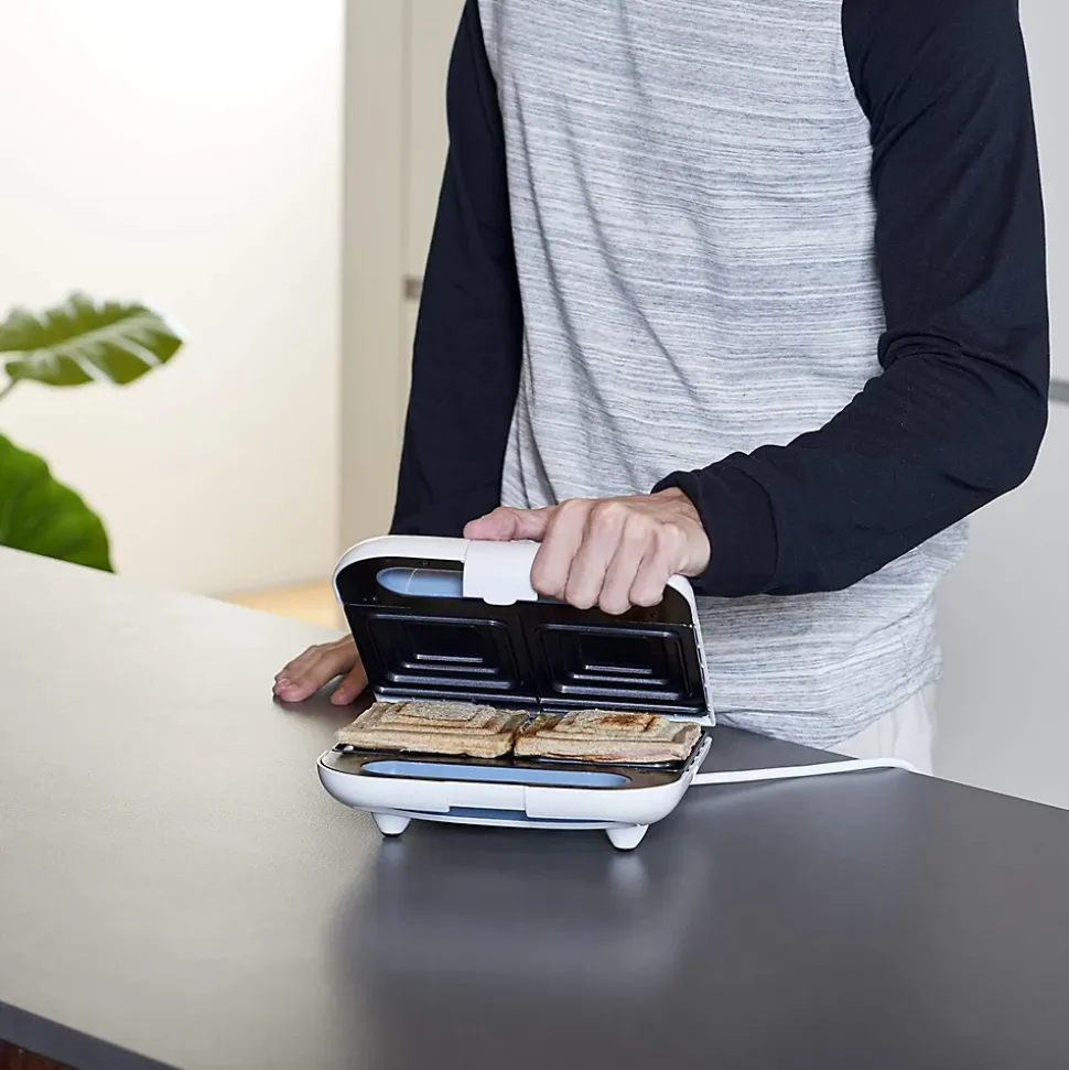 La machine à sandwich TAURUS 800 W est idéale pour préparer des sandwiches parfaitement scellés grâce à ses plaques carrées. Son revêtement antiadhésif empêche les aliments de coller et facilite le nettoyage, un simple chiffon humide suffit. Les voyants lumineux indiquent lorsque la température idéale est atteinte pour une utilisation rapide et pratique. Compacte et légère, elle dispose de pieds antidérapants pour une stabilité optimale pendant la cuisson. Son design peu encombrant avec rangement vertical et logement de câble permet un stockage facile, parfait pour les petites cuisines.